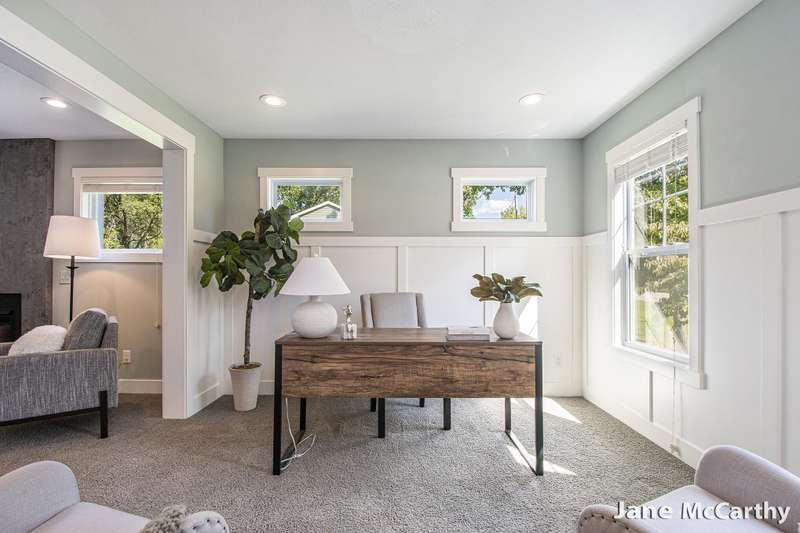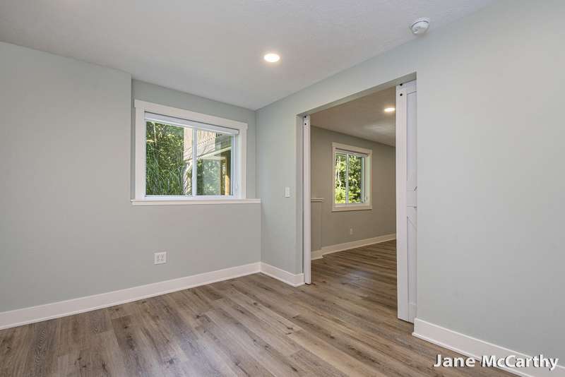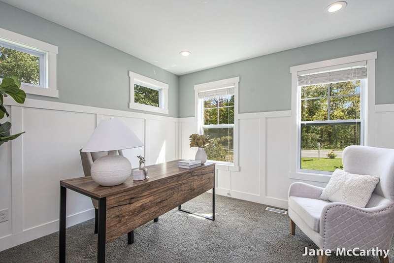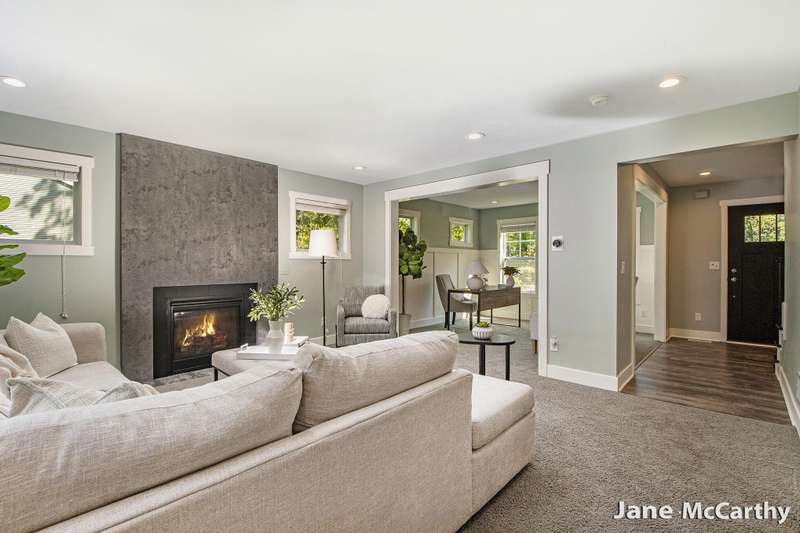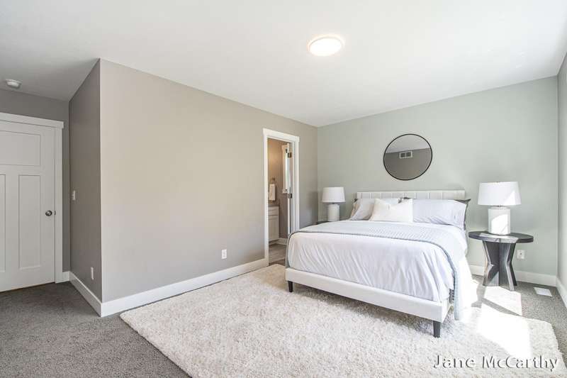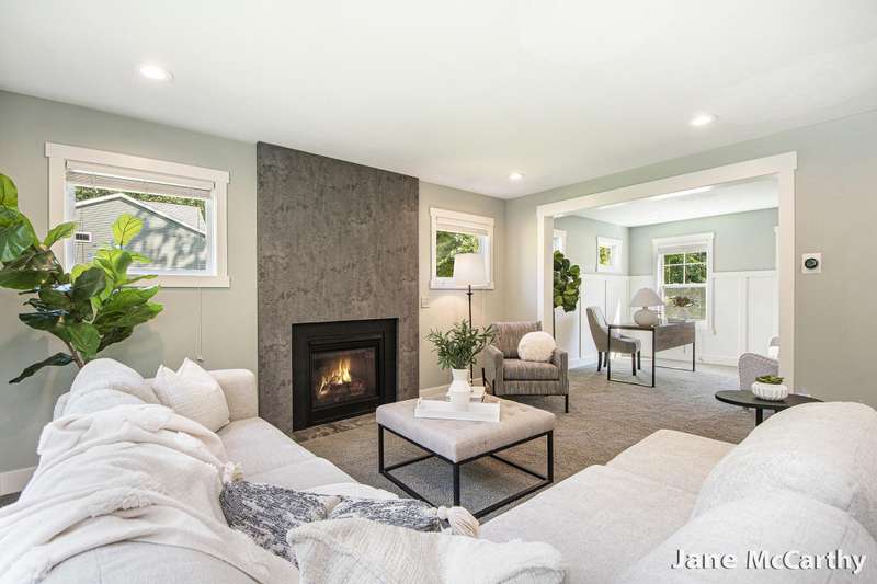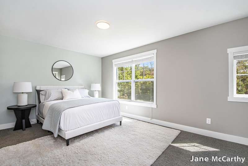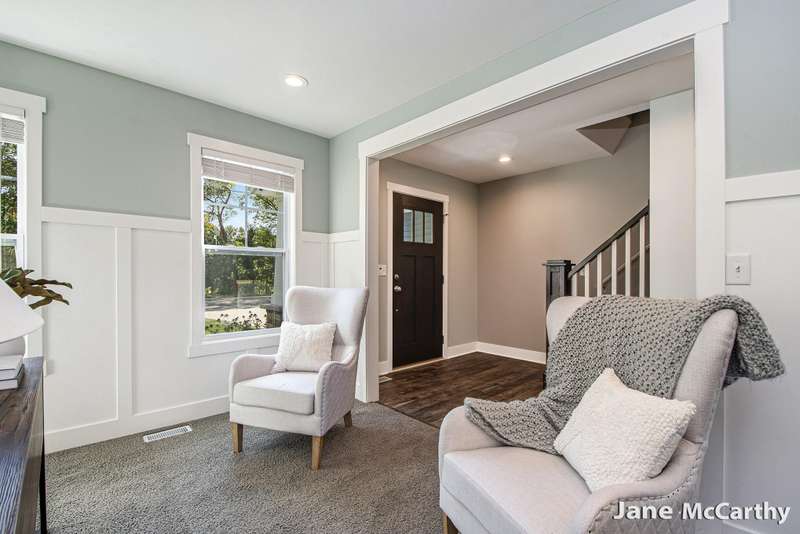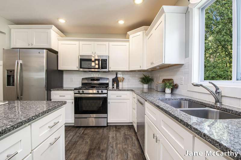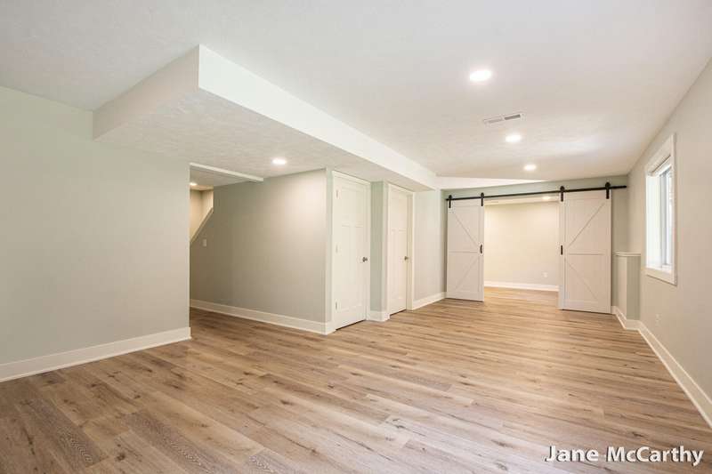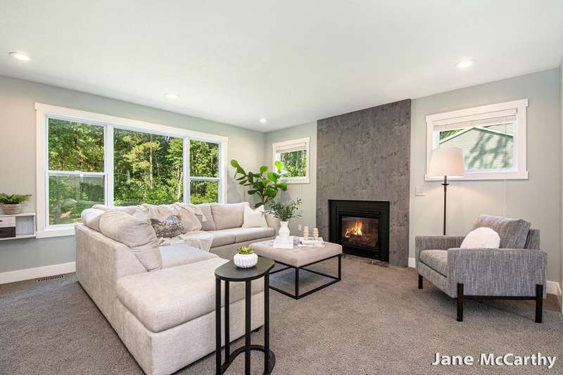 Modern comfort meets wooded tranquility. Nestled on a half-acre in Grand Rapids Township, this 2016-built home blends the feel of new construction with the privacy of a mature setting. Every space has been freshly painted and is move-in ready. Over 2,900 Finished with a bright, open layout. 5BR and 3.5 baths. The main level offers seamless flow between kitchen, dining, and living areas-perfect for entertaining or family time-with abundant natural light overlooking the woods. The walk-out lower level is newly finished for additional living or guest space. Enjoy thoughtful upgrades throughout: whole-house generator hookup, smart switches, Tesla charger, irrigation system, and modern fixtures. Step outside to relax on the deck or explore nearby walking trails-minutes from Knapp's Corner, Provin Trails, and Forest Hills schools. This is the rare move-in-ready home that feels secluded yet connected. Short 2-min drive to boat launch on Dean Lake for fishing, kayaking, or swimming.