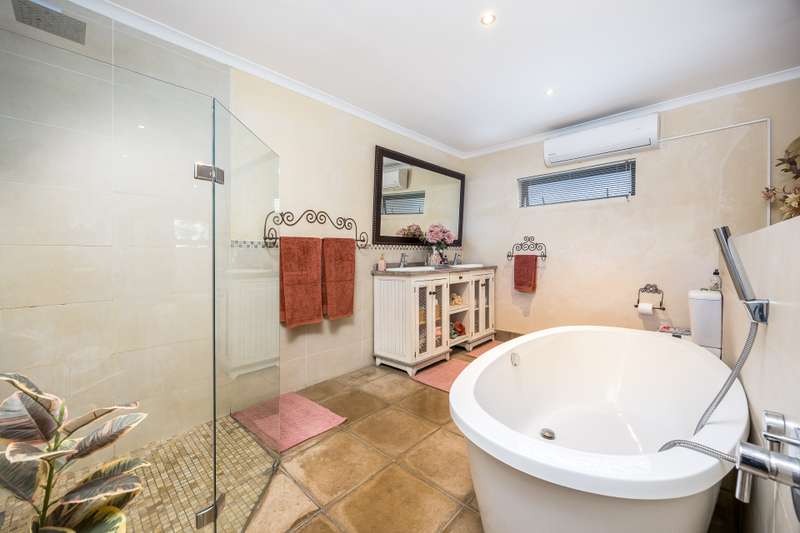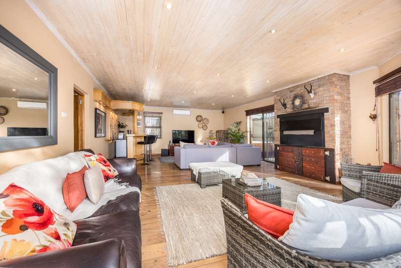 This property has it all, located at the top of the hill in a peaceful cul de sac with undisturbed views of Table Mountain and the Peninsula. As you enter, the house opens up flowing into a quality finished and spacious kitchen with electric oven, gas hob and neatly installed dover and separate scullery. From the lounge, lovely French doors open into a well sized study with guest bathroom. The kitchen opens onto a lovely braai area for those hot summer evenings. The property offers a room with an en-suite bathroom with a private entrance and a full flatlet which offers its own entrance, small garden, kitchen, living/ TV room and bedroom with en-suite bathroom. As you go upstairs the home offers 4 double bedrooms, all with loads of BIC; family bathroom and master with en-suite. Plus, another TV room / lounge and braai room, opening onto a north facing wrap around balcony and a jacuzzi within a private enclosed part of the balcony. Other extras: The beautiful home offers 3x1000L tanks for storing of rainwater with pump for use in washing machine; dishwasher and jacuzzi. Extra storage space Cupboards in the garage 4 Geysers (flat has its own electricity and geyser) 3 Air-conditioners Waterwise meters Fibre ready Viewings by appointment