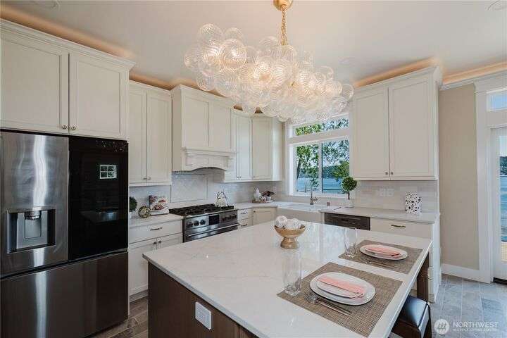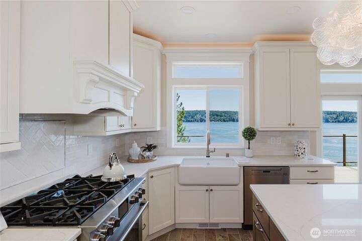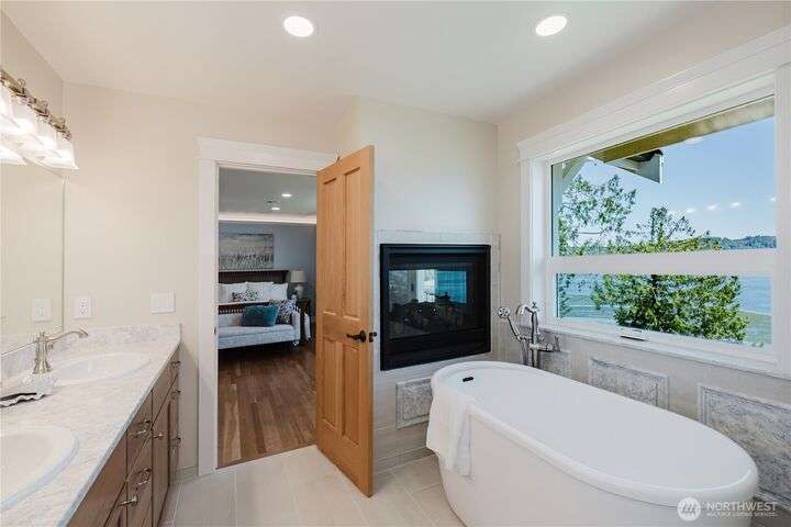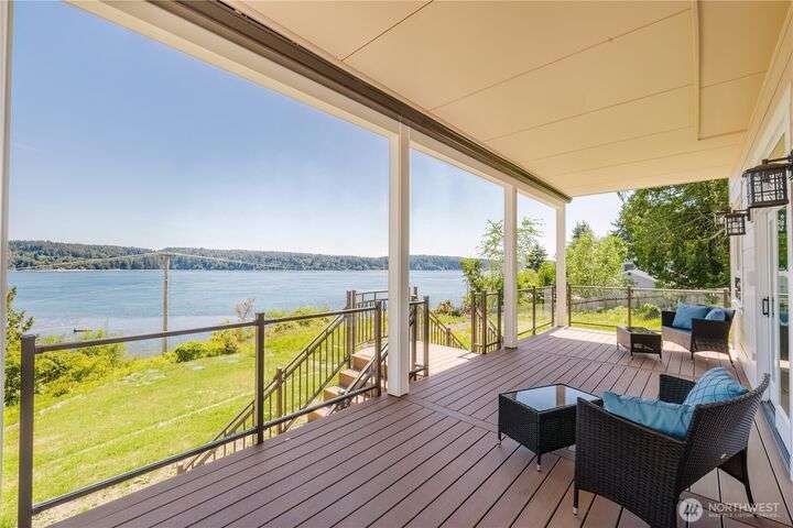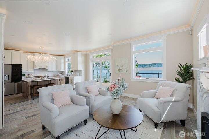 Stunning views of Sound & Mt Rainier await in this new construction architectural masterpiece.Engineered to perfection with special features throughout.Advanced lighting turns on lights as you enter,zoned heat pump heating & cooling,wi-fi access points on each floor.Cherry wood stairs & floors.Master chef's kitchen w/2 refrigerators,built-in coffee maker,baker station,pantry.Open to kitchen the living room with advanced lighting,antique marble fireplace,door to huge deck.The upper floor a 2-sided fireplace in primary bedroom w/adjoining bath.Sweeping views from walk out balcony.Another full bath,bedroom & den.Lower level a capacious art deco recreation room,ornate marble fireplace,kitchenette,3/4 bath ready for steam shower.Tidelands owned.