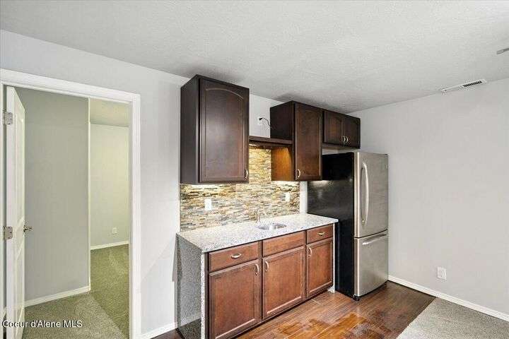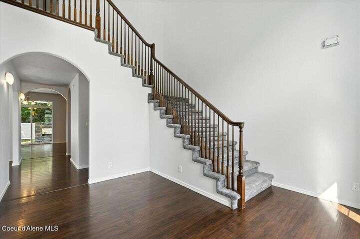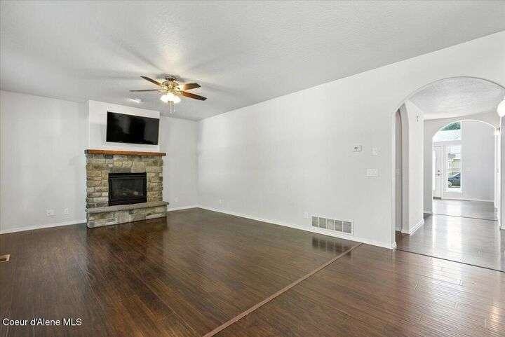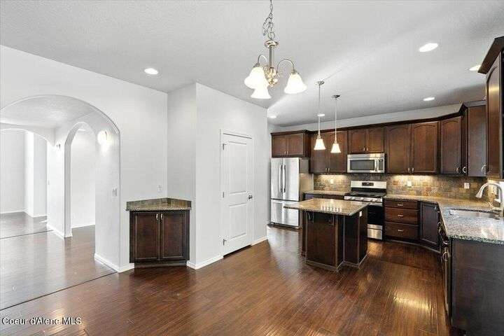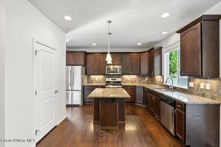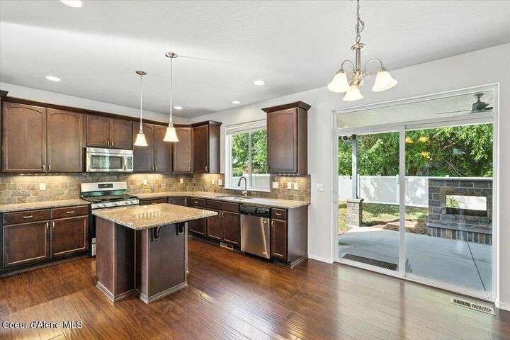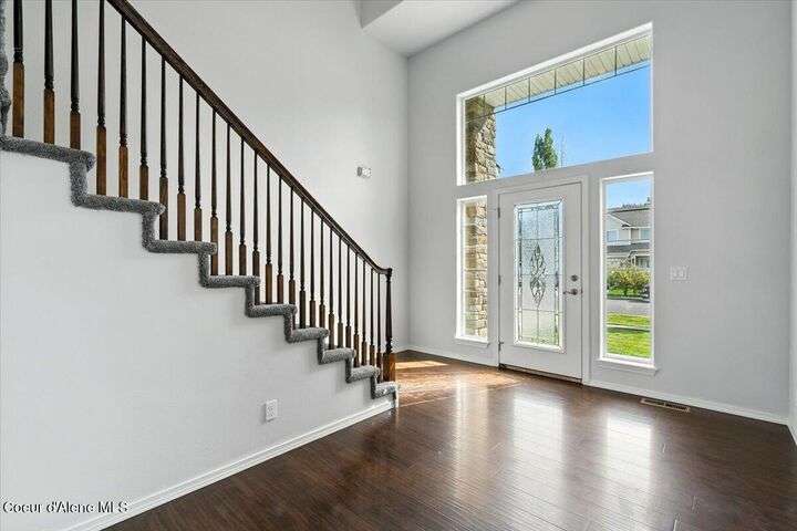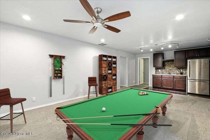 This well-designed three-level home offers impressive space, thoughtful extras, and plenty of room to spread out. From the soaring ceilings in the entryway to the fully equipped media room downstairs, every level brings something special. Main Level: A welcoming entry with a striking staircase sets the tone. The open-concept living room and kitchen are perfect for gatherings, complemented by a dining room, den/flex space, and a convenient half bath. Second Level: Upstairs you'll find three bedrooms, including a massive primary suite with dual walk-in closets featuring custom built-ins. The ensuite bath is equally spacious, with a separate tub and shower. There is even a mounted flat-screen TV ready for use. Lower Level: The fully finished lower level offers two additional bedrooms plus a fantastic gaming/media room with a wet bar and refrigerator—ideal for entertaining. Abundant storage space is a highlight, including a full-size safe that stays with the home. Garage/Outdoor Living: The oversized three-car garage (with tandem parking) is a dream for storage, complete with workbench, heavy-duty shelving, overhead storage, and racks for bikes, tools, and gear. Step outside to a fully fenced backyard featuring a covered patio with a large gas fireplace for year-round enjoyment. The space is also plumbed for a gas BBQ. If you've been searching for a home with extra features, abundant storage, and room to grow, this one delivers.