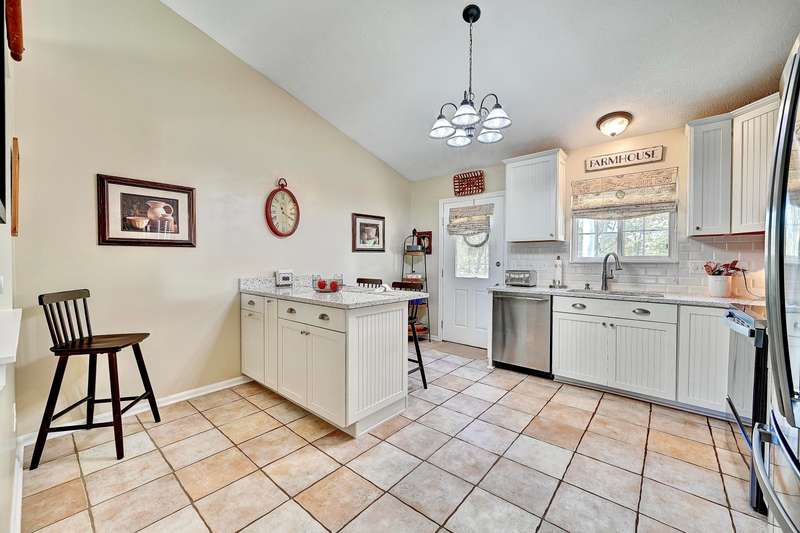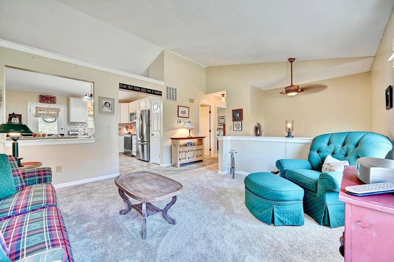 (One or more photos have been virtually staged). Sellers' pride of ownership is evident in every room! Lovingly cared for and updated, this house is on the market for the first time. The new buyer will appreciate the updated kitchen (2017) with wood cabinets, large island with trash bin and spice cabinet, soft close features, and quartz countertops. This 2-bedroom house (with flex space for 3rd bedroom in the lower level), 2 bathrooms(1 full and the other half), 1 car garage with off street parking, gas fireplace, access to deck, vaulted ceiling, newer roof (2024), newer carpeting (2023), remodeled bathrooms, and beautiful window treatments throughout makes this house a perfect place to call home. Washer and dryer included in sale. Conveniently located to shopping, schools, parks and restaurants.