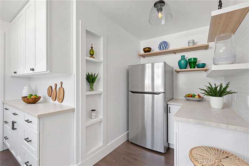 The kitchen features new shaker-style cabinets, soft-close drawers, quartz countertops, and stainless steel appliances. The bathroom is refreshed with designer tile, a custom tub and shower, and sleek modern fixtures. You'll also find a new HVAC mini-split system, updated electrical, and a new water heater for year-round comfort.