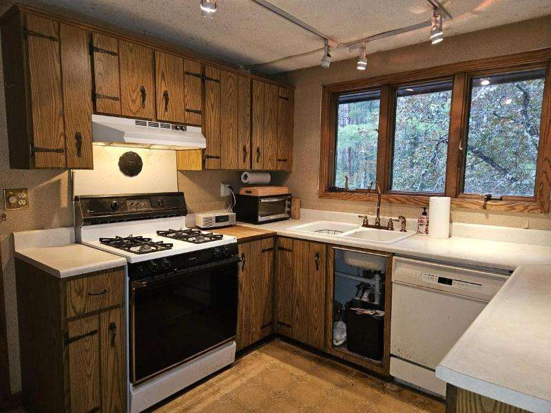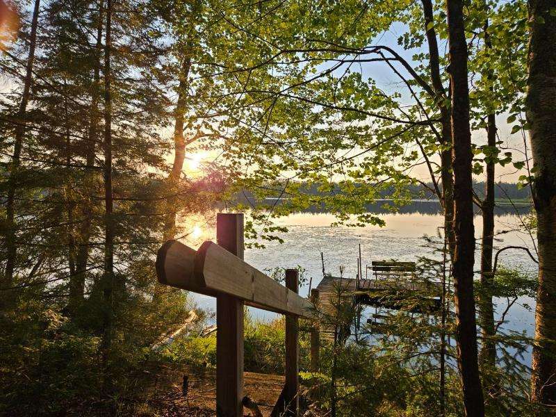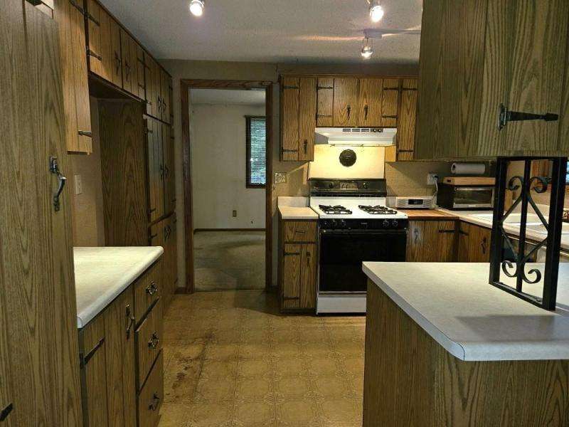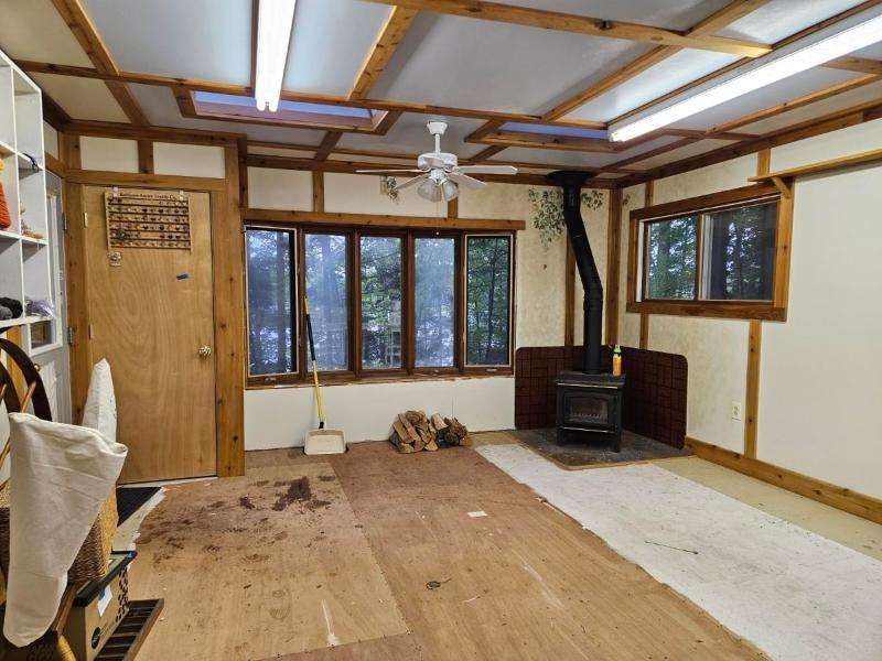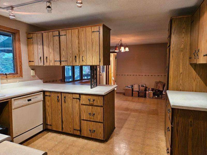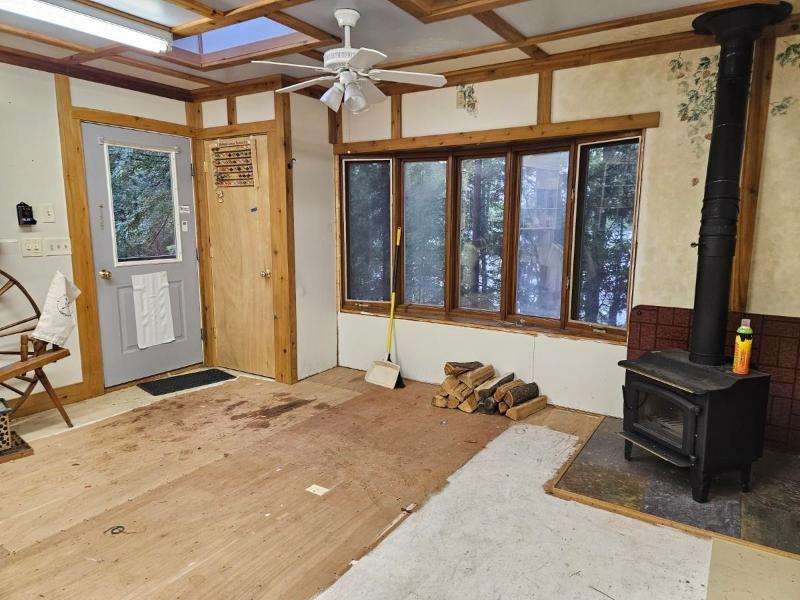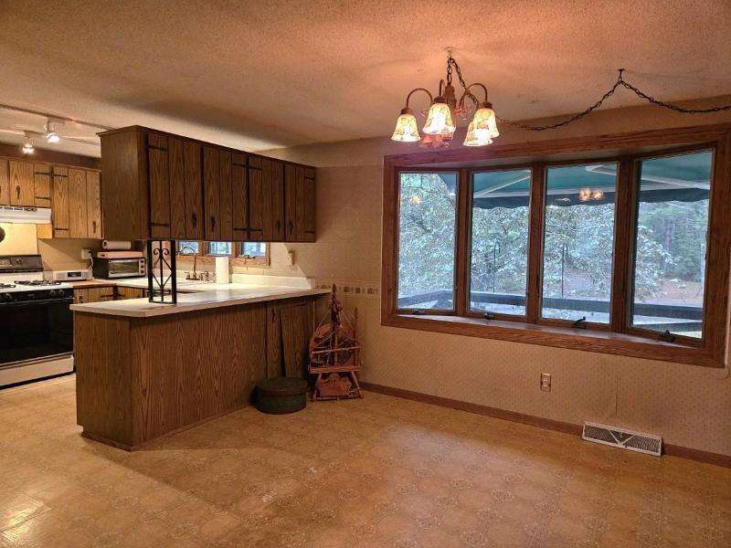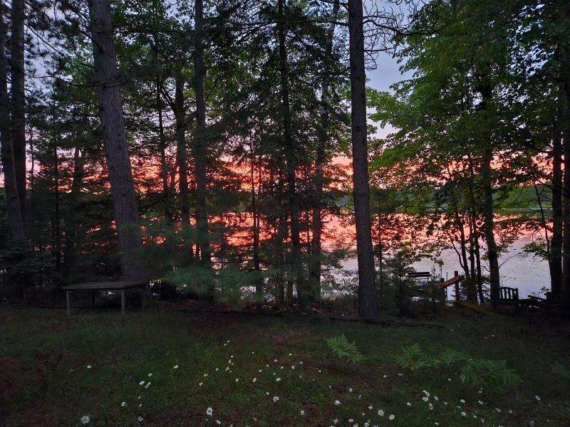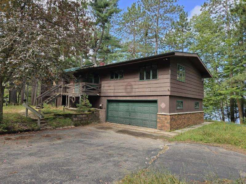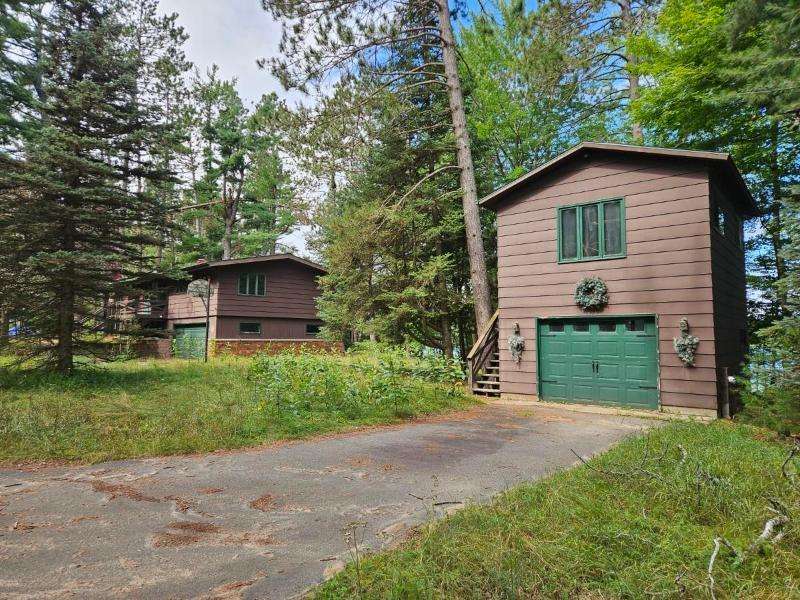 Nestled on 156 feet of northwest-facing Sunset Lake frontage, this tranquil 3 bedroom, 2.5 bath raised ranch offers peaceful lakeside living with abundant wildlife. The main level features a spacious living room with gas stove, dining room, kitchen & flexible dining area or family room. A 1/2 bath off the front entrance adjoins the primary bedroom. The other 2 bedrooms & a full, updated bath complete this level. The walkout lower-level has a rec room with woodburning fireplace, laundry, 3/4 bath, storage & access to the 2-car drive-under garage. Enjoy outdoor serenity from the front deck or rear patio. A 1-car detached garage with studio/workshop above is perfect for hobbies. The home could use updating and TLC, but its serene setting makes for a rare opportunity to create your dream retreat.