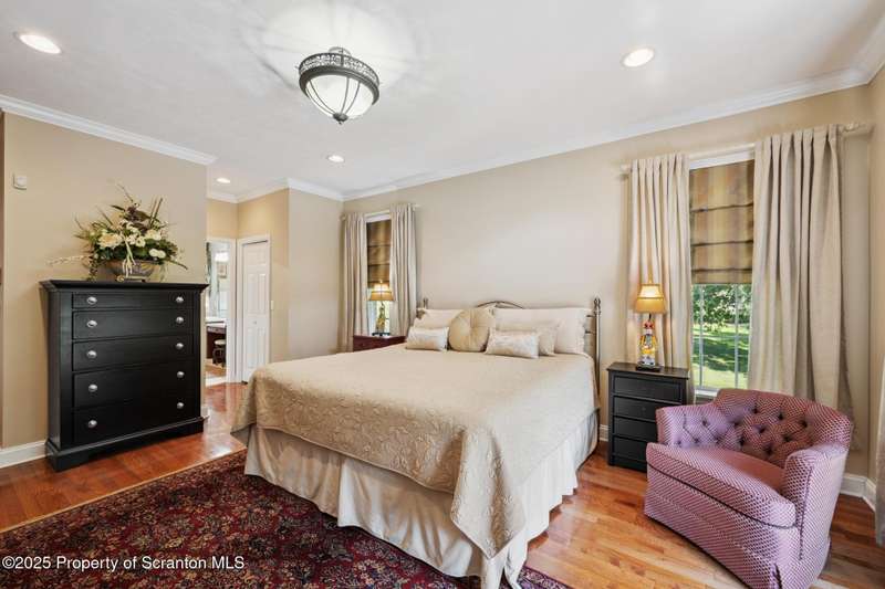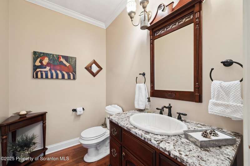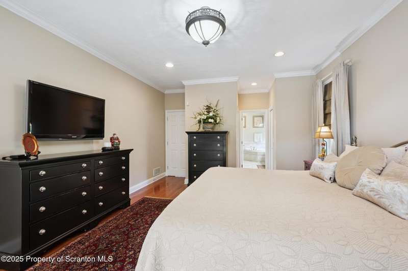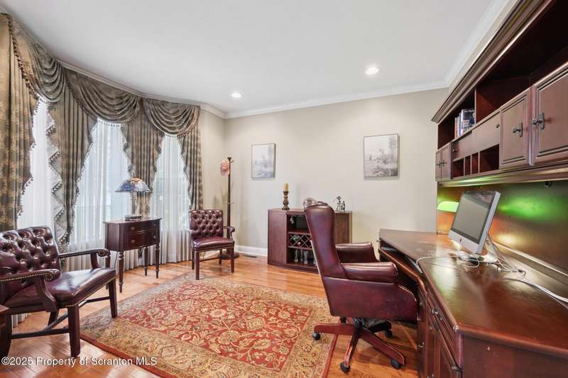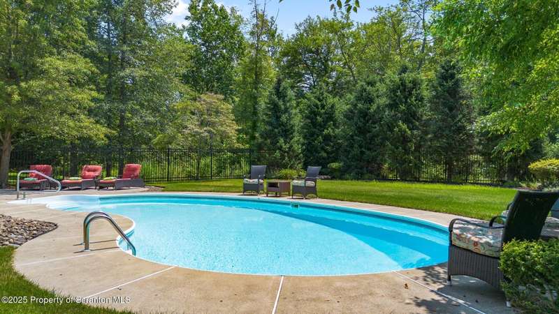 Welcome to this impeccably maintained and beautifully updated Colonial home, offering 4 to 5 spacious bedrooms and an exceptional blend of classic charm and modern convenience. Nestled in a desirable, well-established neighborhood, this residence boasts curb appeal with its timeless architecture, mature landscaping, and inviting front entry. Inside, the heart of the home is a modern, modern kitchen featuring stainless steel appliances, granite z countertops, custom cabinetry, and a elegant breakfast nook perfect for casual dining or entertaining. The open-concept layout flows seamlessly from the sunlit breakfast area to a spacious living room with a fireplace, creating a warm and inviting atmosphere. The first-floor master ensuite is a rare and luxurious find, complete with a walk-in closet and a spa-like bathroom offering dual vanities, a jacuzzzi tub and a separate glass-enclosed shower. A dedicated home office and optional fifth bedroom or second dedicated office is also located on the main level, ideal for remote work or guest accommodations. On the second level, you'll find three additional generously sized bedrooms with ample closet space and an updated Jack and Jill bath, offering comfortable accommodations for family and guests. The fully finished lower level expands your living space with a media area complete with projector and recreation room. This area offers perfect family times for gatherings or a quiet retreat. Step outside to your private backyard oasis, where a spacious deck and stone patio overlook a beautiful inground pool, creating the ultimate setting for summer entertaining or quiet relaxation. This home is in very good condition, with numerous comforts, updated air systems and refined finishes throughout. It's truly move-in ready and designed for modern living with timeless elegance. Welcome, You're Home.