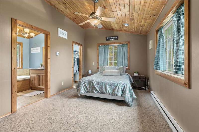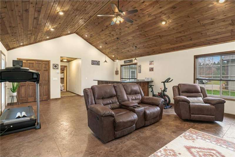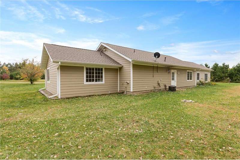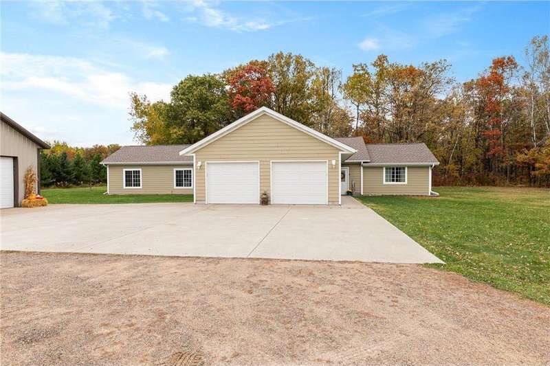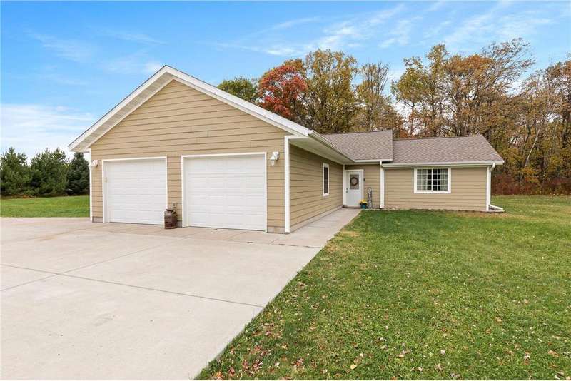 Discover peace and privacy on 20 acres with this beautiful 3-Bedroom 2-Bath patio home. The spacious 1,990 sq ft layout features vaulted ceiling in the large family room, complete with in-floor heat and stunning stamped and stained concrete floors. Enjoy a warm gas fireplace, a spacious open kitchen, and main floor bedroom with a private ensuite and walk in closet. This property also includes a 24x30 attached and insulated garage, as well as a 30x40 outbuilding with concrete floors- Perfect for hobbies or storage. Wildlife and deer are frequent visitors, making this a true nature lover's retreat.