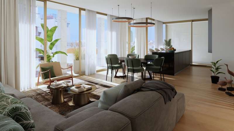 New three-bedroom apartment, with generous areas and a large balcony, in the Golden View Metropolitan development, near the sea, in Matosinhos Sul. This luxurious apartment boasts a modern and elegant design, featuring large floor-to-ceiling windows that open onto balconies, natural materials, smart-home technology, thermal and acoustic insulation, and other premium finishes that prioritise comfort and well-being. The living room is in open space with the kitchen, the latter fully equipped with AEG appliances. The three bedrooms are spacious and bright, one of which is a master suite with a large dressing room. The apartment includes 2 parking spaces with pre-installation of a management system and electric vehicle charging points. On the roof, a large communal terrace offers residents views of the beach, the sea and the emblematic Leixões port building. Excellent location, on one of Matosinhos' main avenues, a stone's throw from the beach, in an area full of terraces, restaurants and shops. Matosinhos Sul has excellent access, including a metro line, and is currently one of the most attractive places to live in Greater Porto. CHARACTERISTICS:Area: 124 m2 | 1 333 sq ft Bedrooms: 3 Bathrooms: 3 Garage: 2 Energy efficiency: A FEATURES: Parking spaces 12 and 13.