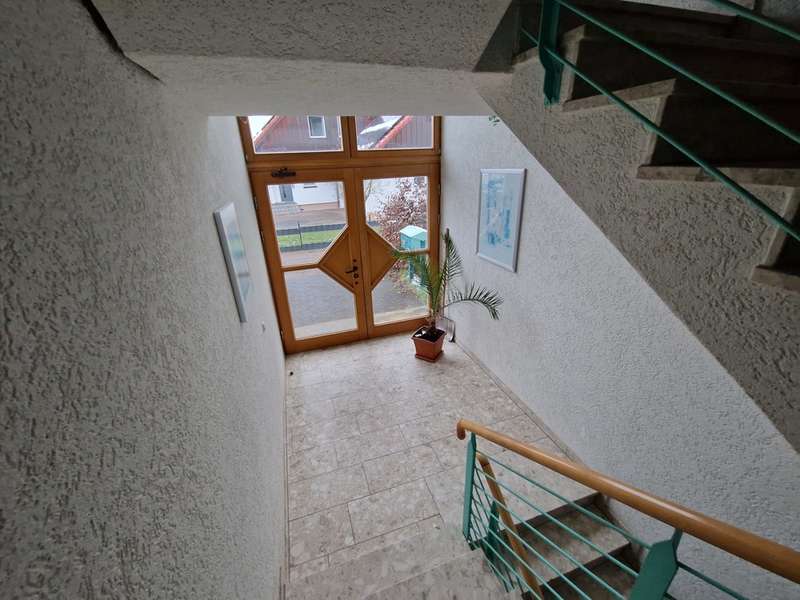 This well planned and very well maintained apartment house from 1996 is for sale. In total there are five residential units in the property. There is a good residential community and a pleasant living climate. Built on the edge of a field and at the end of a cul-de-sac, the house is located in a quiet residential area. On the property there is a double garage with two doors, which provides ample space for vehicles. The attic is accessible via an outside ladder and can be used for storage. In the basement of the residential building, apart from the utility, cellar and boiler rooms, there is also a two-room apartment. This includes an east-facing, sheltered terrace, which invites you to spend relaxing hours. A massive basement staircase facilitates access on the west side to the well-kept garden. On the back side, the first floor apartments each have a terrace, which can be used for cozy hours. Two residential units are arranged on the first floor. The apartments are largely similar cut and equipped. On the right side of the entrance are the smaller apartments with about 60 m² and on the left side the two larger apartments with about 90 m² living space. The two other apartments are available in the converted attic. Furthermore, if necessary, the attic could be further developed. The separately adjustable underfloor heating provides for a pleasant warmth. The floors are covered with tiles, laminate and carpet. The apartments all have exterior shutters. The bright and open staircase connects the floors with each other and joins them as a unit. There is a separate washing machine connection for each unit in the communal laundry room. The individual electricity meters are assigned to the corresponding apartment. A lockable cellar room is available for each unit. Get your own impression of this very well maintained apartment building and invest here as a capital investment. Further questions about net cold rents etc. we answer very gladly on request.
