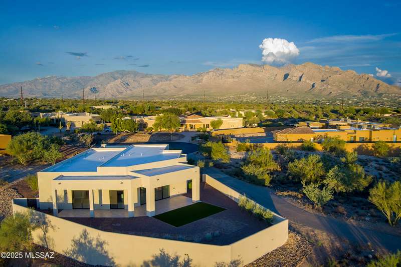 Absolutely stunning 360 degree panoramic mountain & city views will capture your breath as you enter into this newly constructed & exceptionally upgraded contemporary home on a huge 3.52 acre lot. This 4 BD/4BA/3,320 Sq.Ft/3 car garage home has an inviting & open concept floorplan. Enter through the large rotating solid wood door & into the spacious family room. Separate living area w/wet-bar & wine fridge. Chef's kitchen offers beautiful quartz counters w/waterfall design on the kitchen island, custom cabinets & pulls, upgraded stainless steel appliances, custom light fixtures, breakfast bar & walk-in pantry w/built-ins. Master suite is spacious w/slider to patio, dual vanities, soaking tub, tiled walk-in shower & large walk-in closet w/built-ins. 2 Guest bedrooms are en-suite **(MORE)**