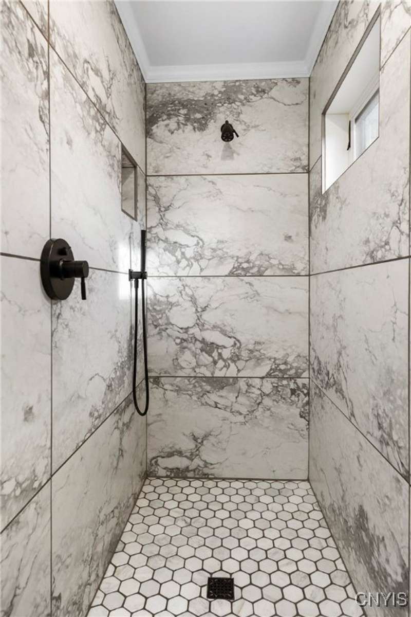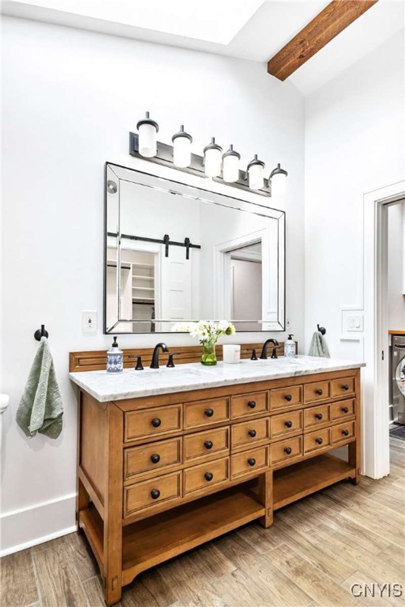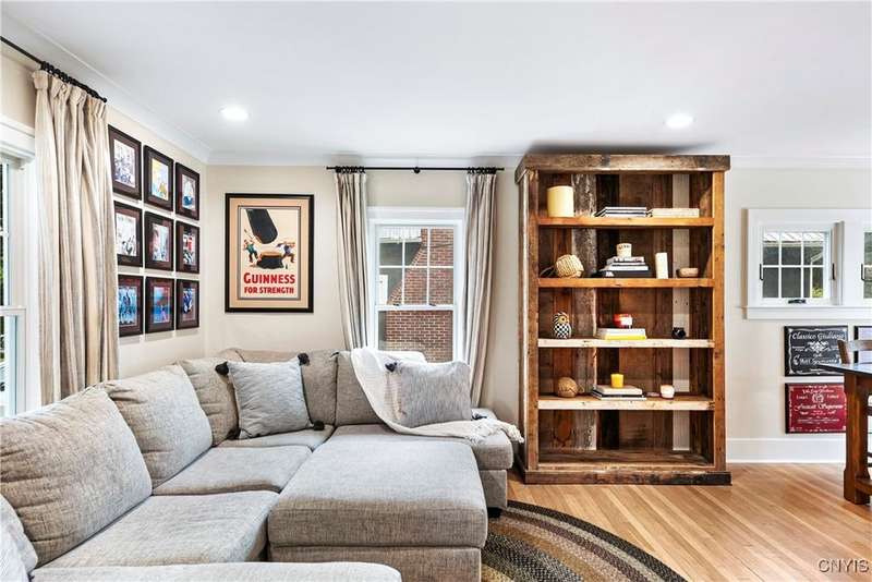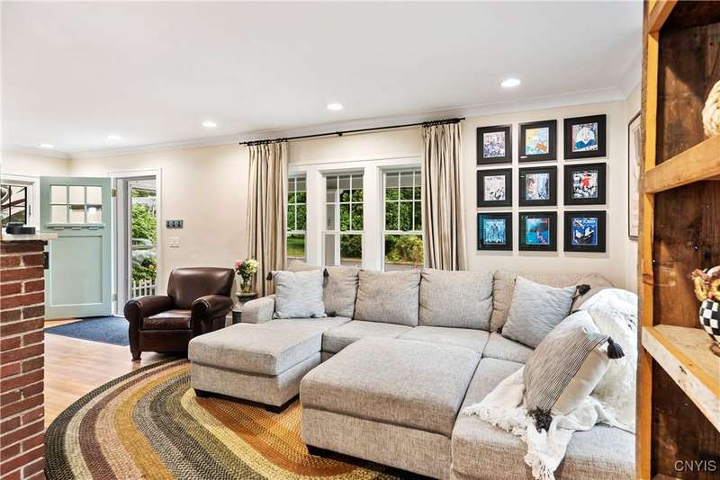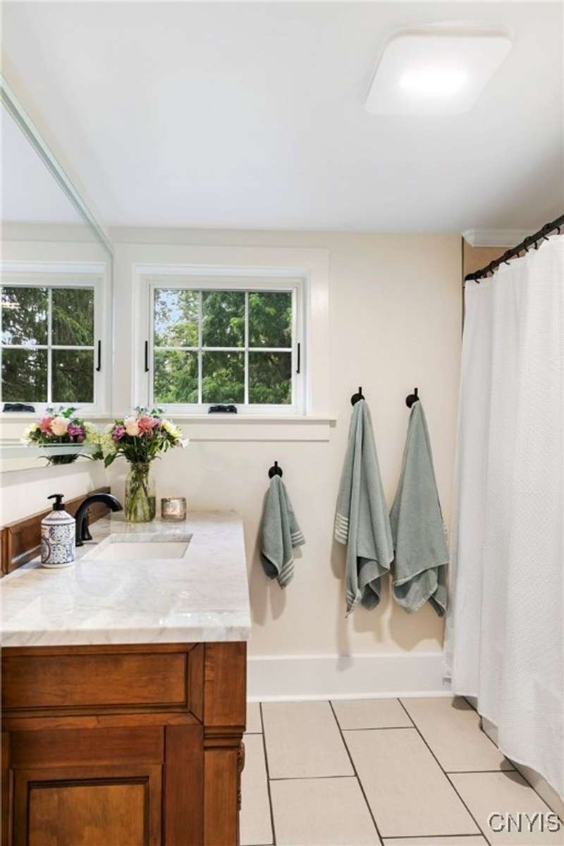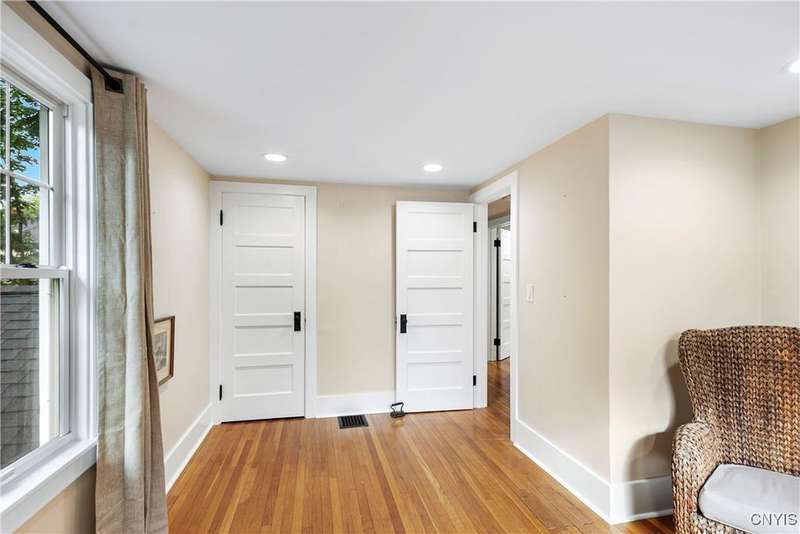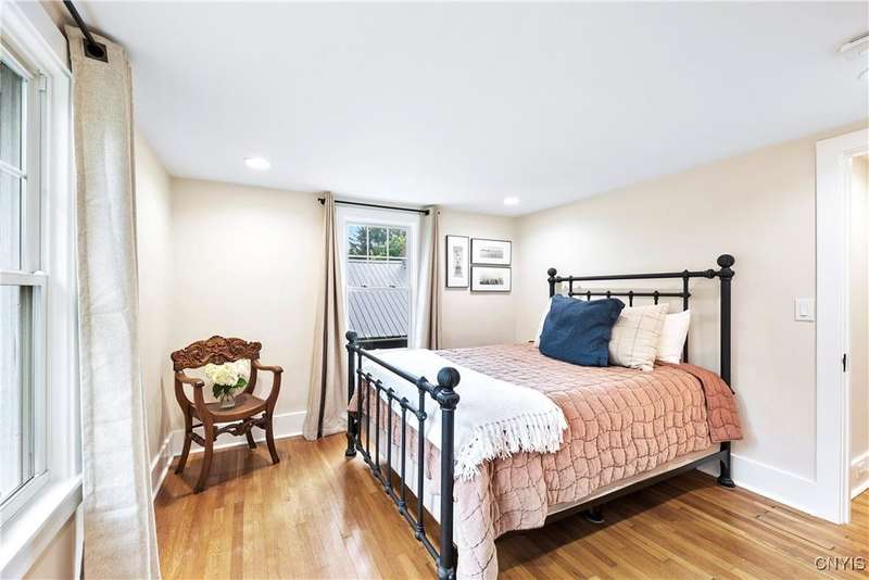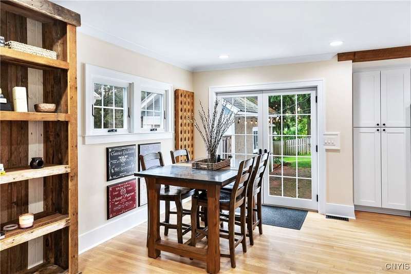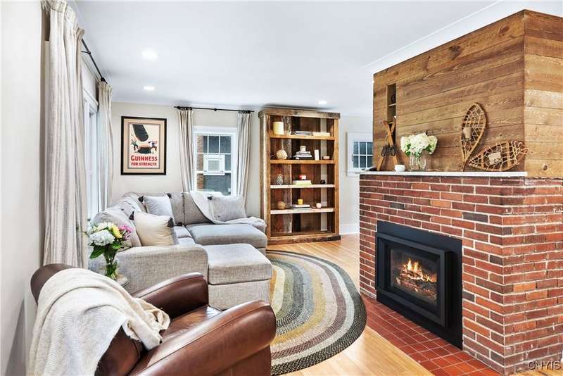 A beautifully renovated colonial home located in the heart of the village awaits you. This charming abode boasts hardwood floors throughout, adding to its character and allure. The first floor features a primary suite with a walk-in closet, a new bath with heated floors, a double vanity, and an oversized tiled shower. The kitchen is equipped with a large island, stainless steel appliances, and custom soft-close cabinets. The open floor plan includes a family room with a gas fireplace and an eat-in area with French doors leading to a brick patio. Upstairs, there are three bedrooms and an updated bath, while the third level offers a full attic perfect for storage. The fenced-in backyard is beautifully landscaped with mature trees and plants. Within walking distance to the village and schools, this home is the epitome of convenience and style.