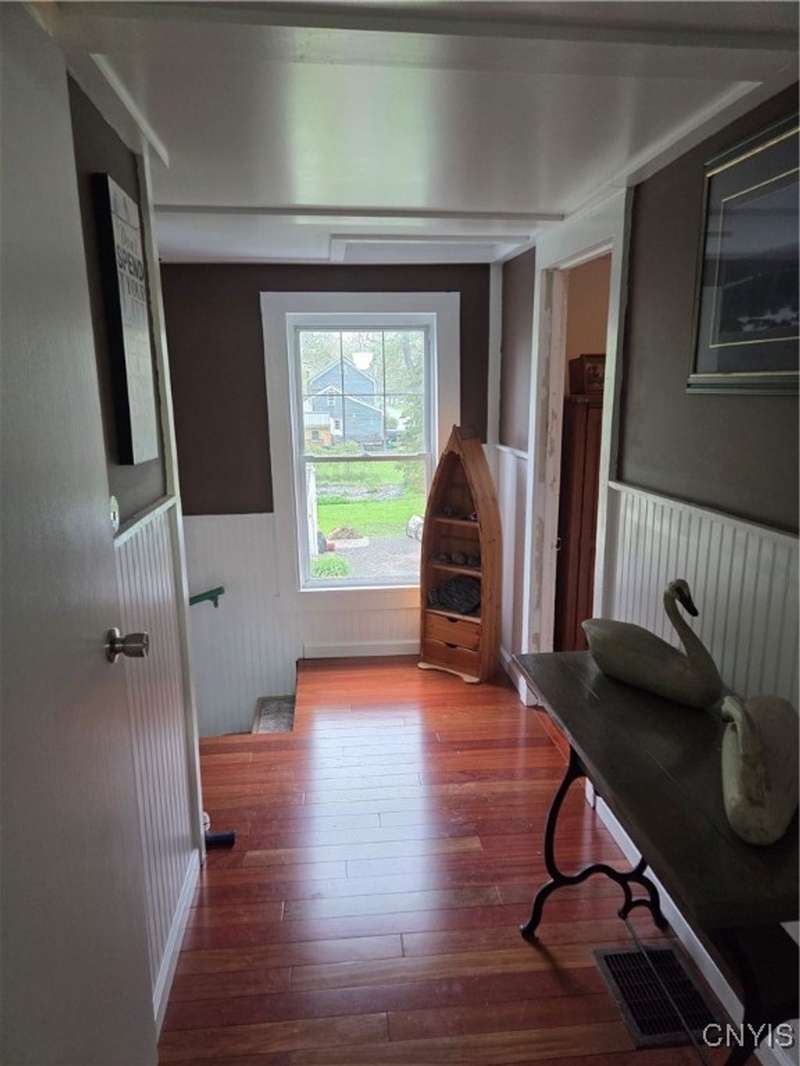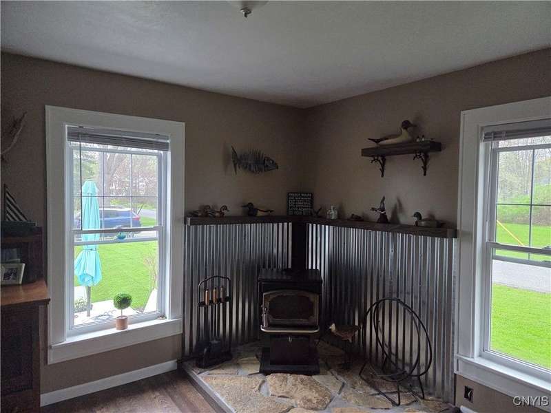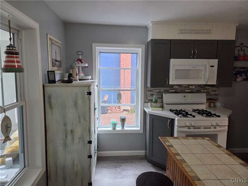 Enjoy the many amenities this cute village home has to offer. This prime location is walking distance to the local churches, the many downtown shops, grocery store, brewery and restaurants The village green is also a short stroll. You can walk to the village docks and requires a short jaunt by car or bicycle to the very scenic Tibbetts Point lighthouse. The many upgrades in the last six years are . The two bathrooms have been renovated. New laminate flooring in most areas of the house. The kitchen is less than four years old boasting new appliances as well as cabinets. The insulation, plumbing and wiring have bee upgraded. There has been some new windows installed. There is a new roof on the single stall garage. Two new patios one with firepit. There is also the renovated front porch with beautiful St Lawrence river views . Also the first floor laundry and mudroom are recent improvements. The upstairs also includes an other bonus room for bedroom. For the pet lover there is an invisible fence and dog kennel. The finishing touch is the sellers green thumb in well prepared landscaping