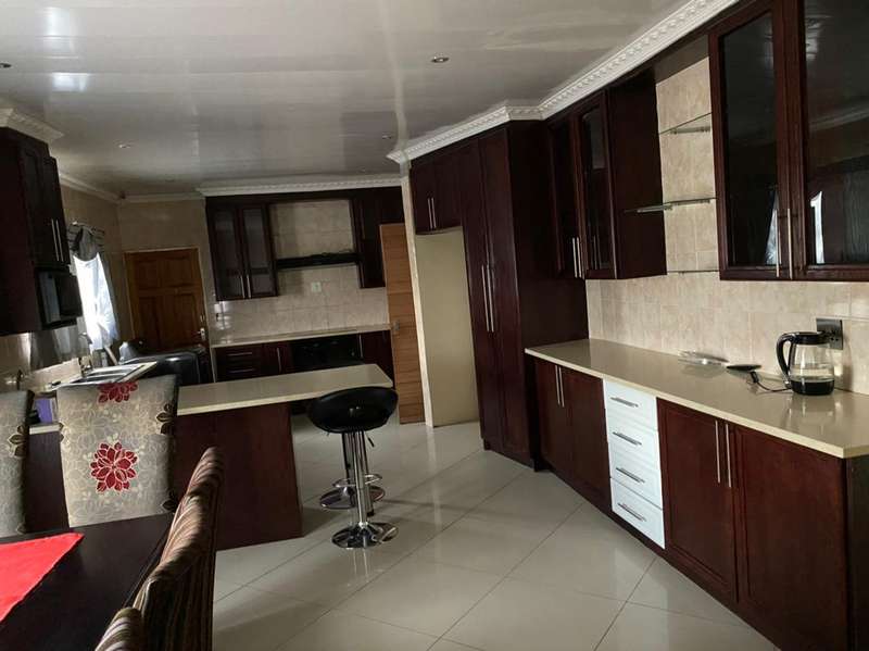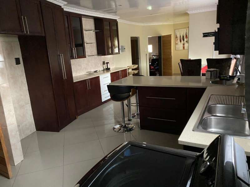 a Beautiful modern family home with wall heating in all bedrooms, air con in the main bedroom and heating in the main bedroom bathroom. CCTV and electric fencing. Generator and Jojo tank with pump included. In a very secure and private neighborhood