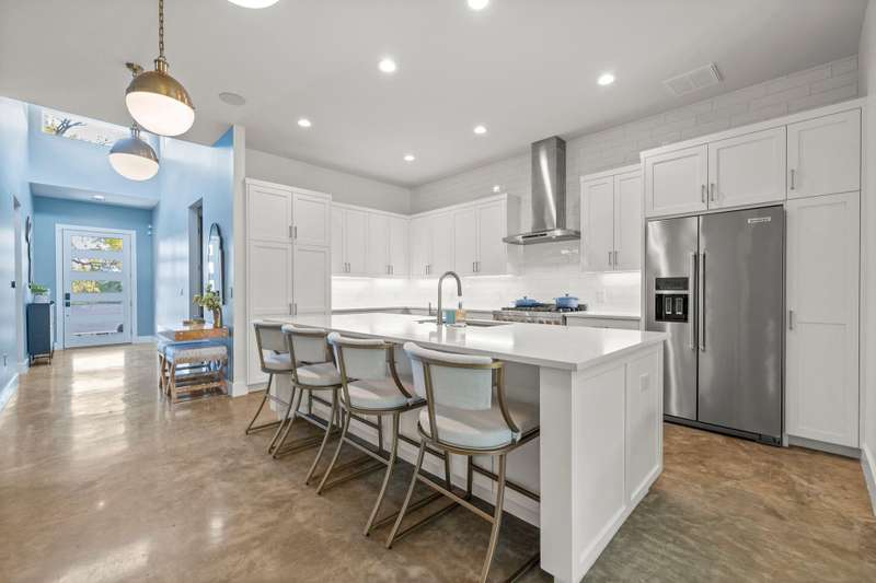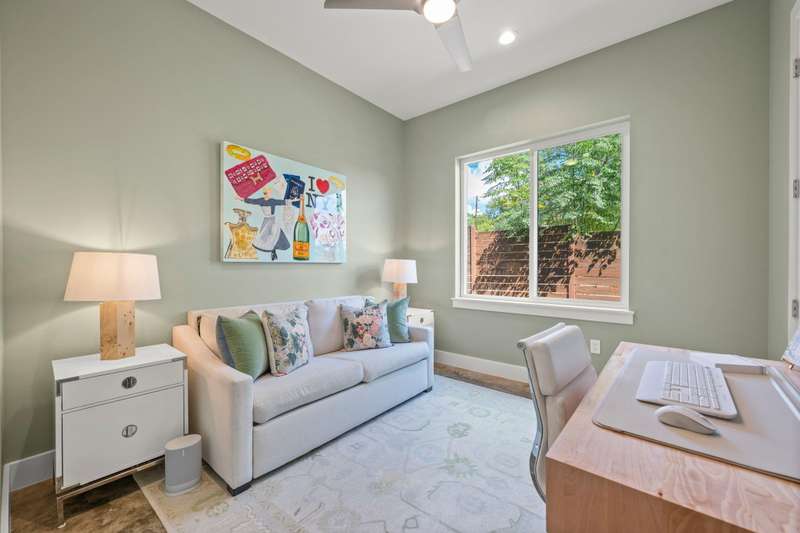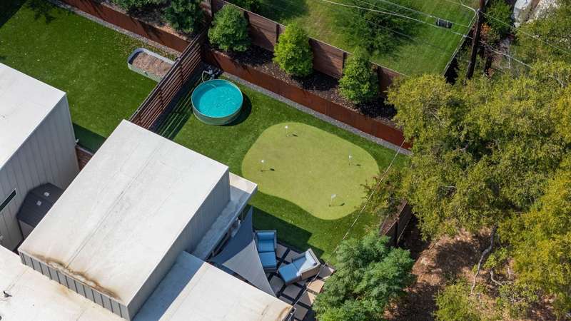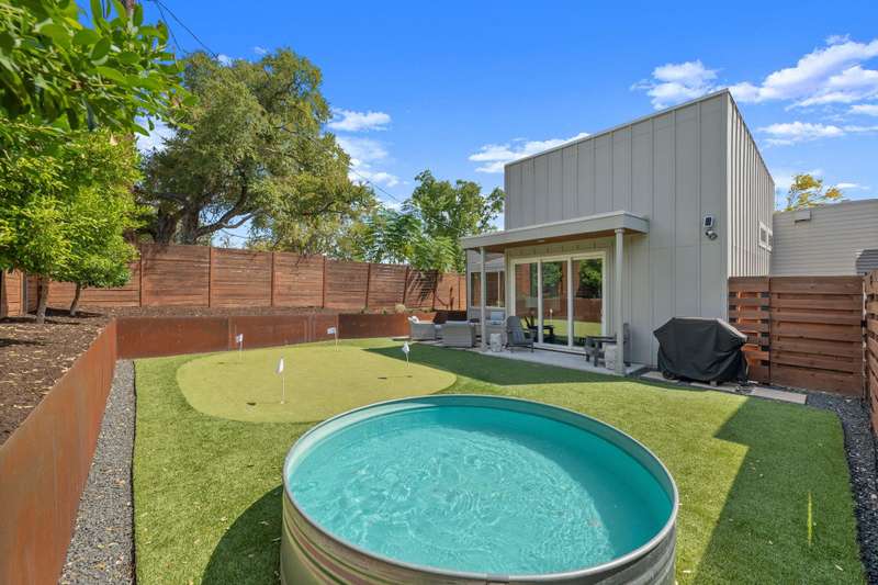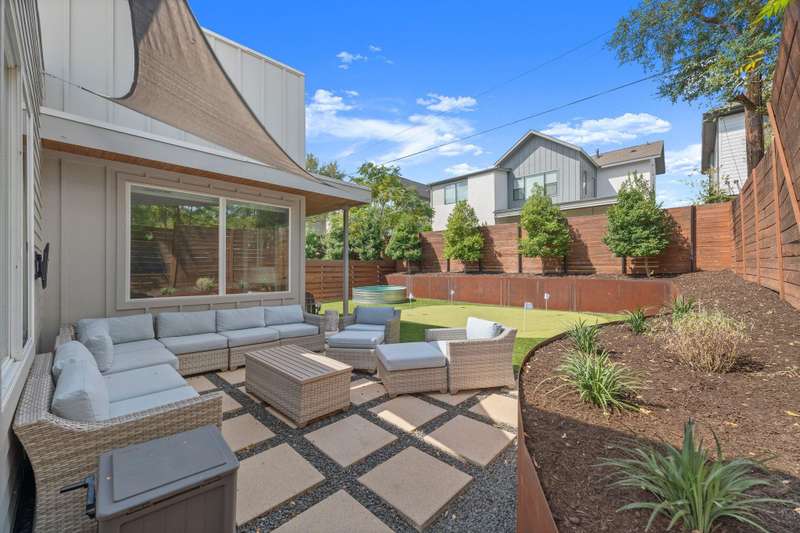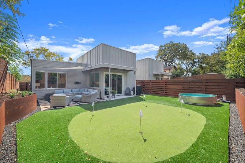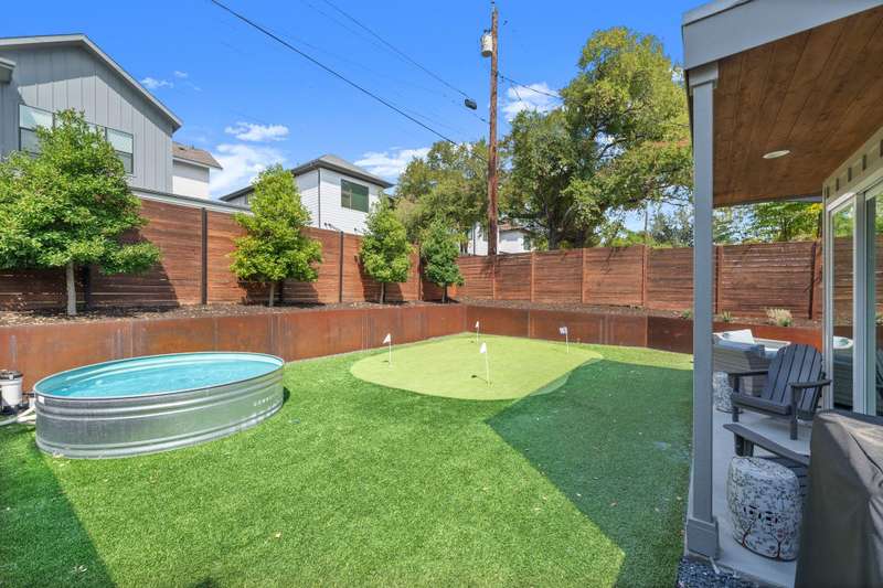 Experience modern Austin living at its finest in this gorgeous 3 bedroom, 3 bathroom residence, where elegant style meets effortless livability. Thoughtfully crafted with soaring ceilings and beautiful design, the open-concept living space feels bright, airy, and refined. Immaculate finishes and stylish fixtures give the home a fresh, contemporary aesthetic that feels both polished and inviting. The heart of the home centers around a stunning kitchen with sleek cabinetry, premium appliances, and an expansive island ideal for casual dining or entertaining. Each bedroom offers generous proportions and spa-like bathrooms with exquisite tilework. The primary suite provides a serene retreat, complete with a walk-in closet and a luxurious en suite bath. Escape to the private backyard oasis designed for relaxation and fun. Enjoy a covered porch ideal for morning coffee, a refreshing stock tank pool for warm afternoons, a personal putting green, and a cozy sitting area. Perfectly located near The Grove Signature Park, the trails along the Shoal Creek Greenbelt, and Austin's top shopping and dining options, this home delivers the best of modern design and central convenience. Tax and assessed values are estimates for illustration purposes only. All figures should be independently verified.