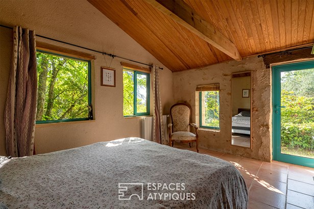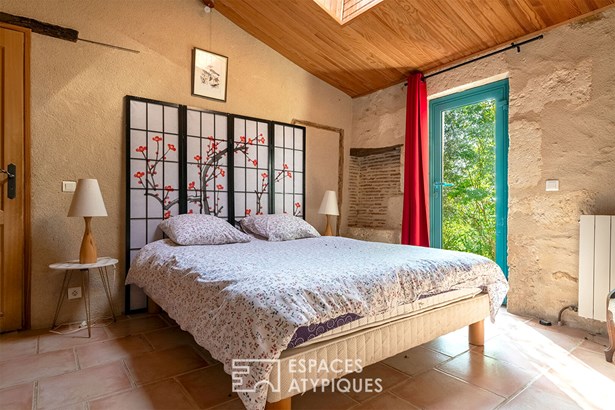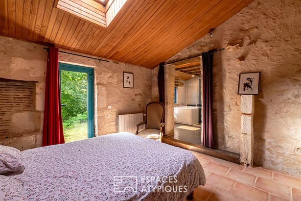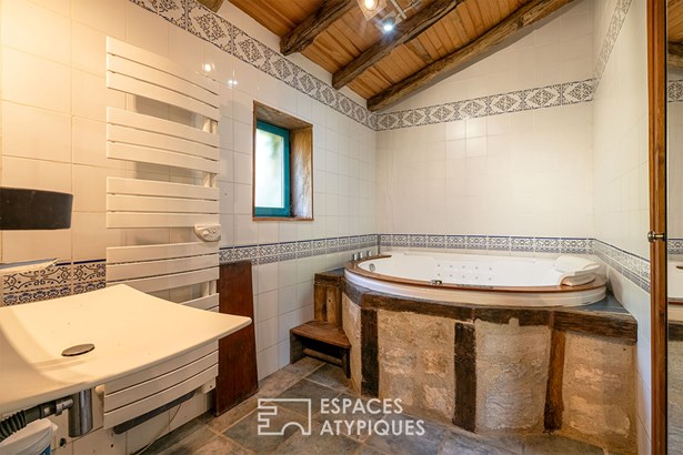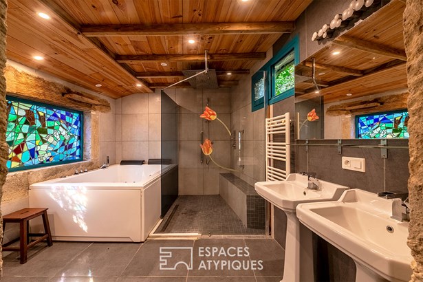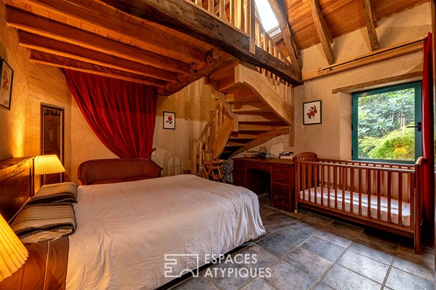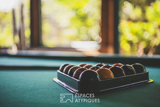 A billiard room, equipped with a wood-burning stove, completes this atypical space! The night area offers you a first bedroom with a mezzanine as well as a bathroom, including a whirlpool bath for two people and its hammam shower, which constitute a real asset.