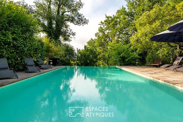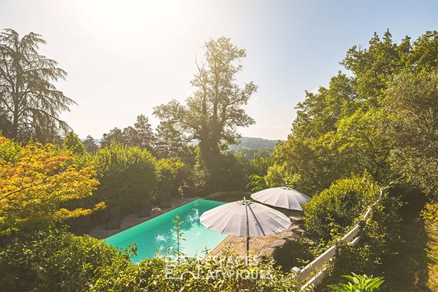 Outside, several modular terraces adapt to all desires and atmospheres. Either to enjoy the heated swimming pool, a 7-seater spa, a low-temperature sauna, as well as an outdoor kitchen, all offering a panoramic view of an emblematic castle.