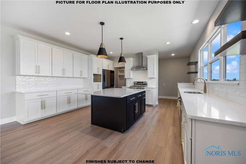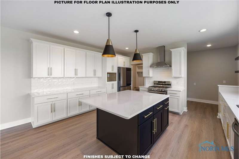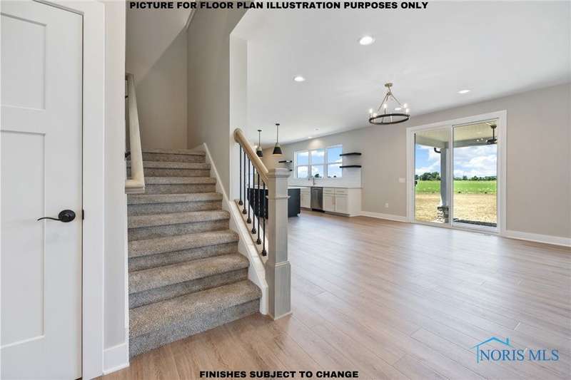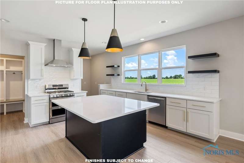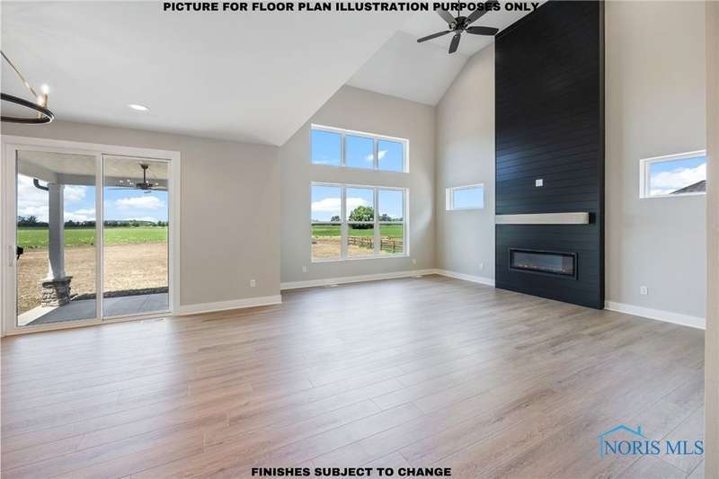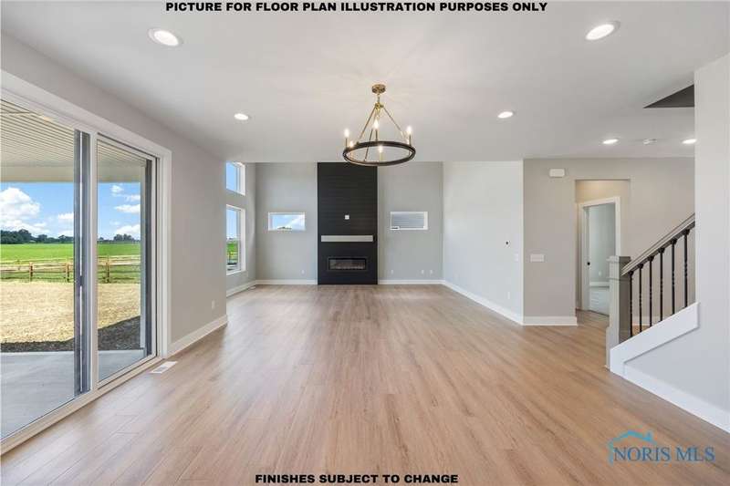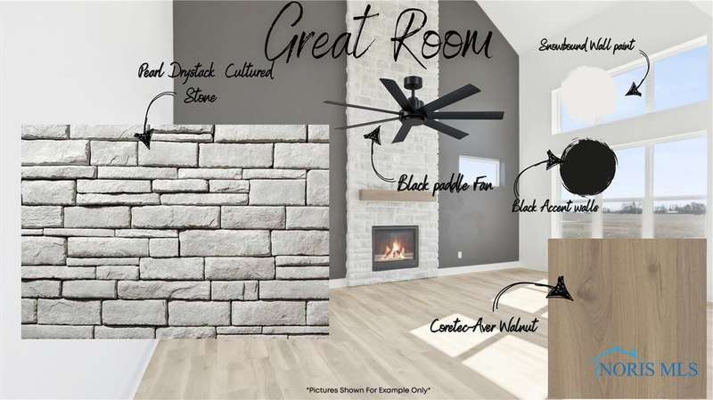 Brand New Buckeye Dublin Floor Plan boasts a grand open-concept layout for modern living. The two-story great room features floor-to-ceiling fireplace and breathtaking windows, flooding with natural light. The chef's kitchen is a dream, offering endless countertop space, designer light pendants, tiled backsplash, extended island ideal for entertaining, and walk-in pantry w/ custom wooden shelving. Owners ensuite tiled shower and free-standing tub. Multiple walk-in closets throughout. Don't forget about the covered patio. Pictures for floor plan illustration purposes only.