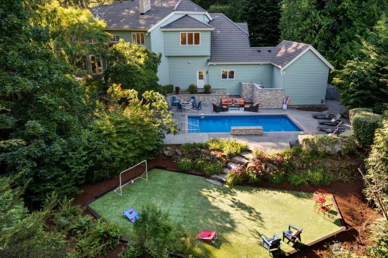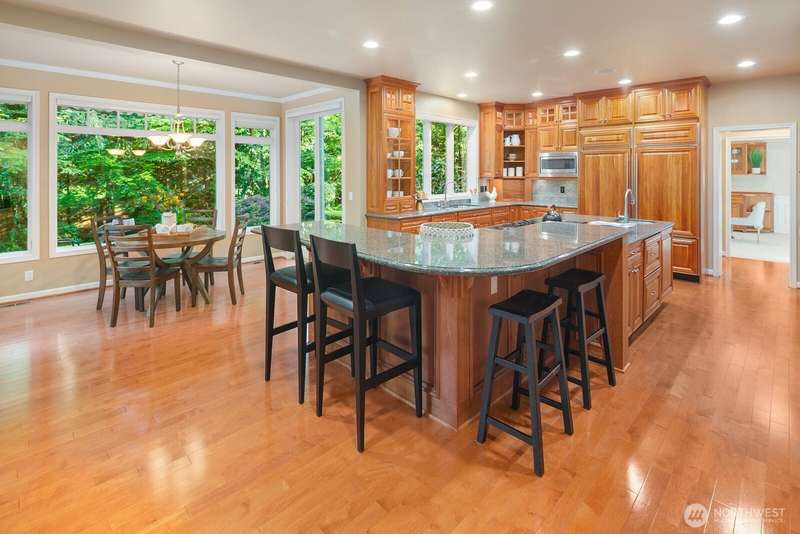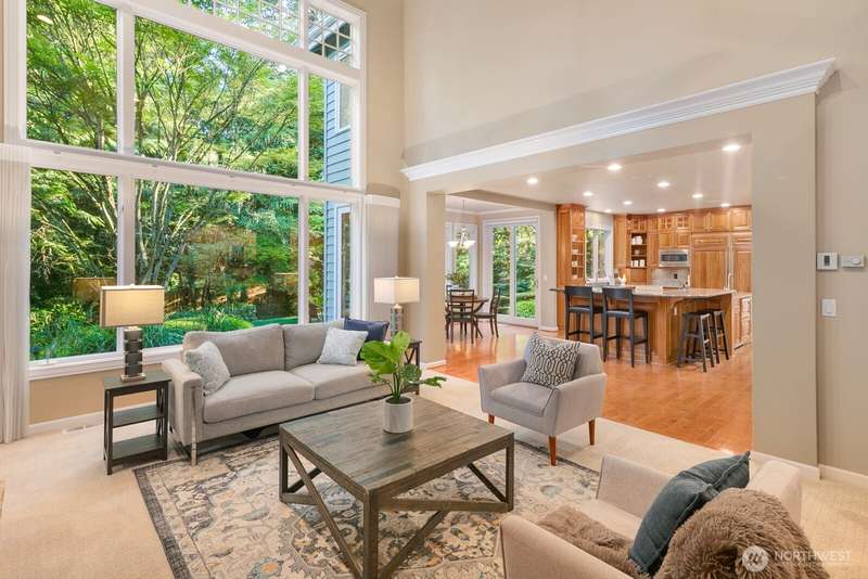 Experience refined living at its best with this impeccably maintained & thoughtfully designed 5700+ sq. ft home that expresses Luxury, Sophistication & Warmth. Situated nicely on a serene shy acre setting in one of Bridle Trails most sought-after neighborhoods. Impressive Chef's Kitchen with massive island, gorgeous counters & Premium appliances. Sun drenched living spaces with expansive windows will put a smile on your face. Space for everyone. Impressive main floor den, Dual bonus rooms, main level bedroom with nearby ¾ bath. Primary Suite w/gas FP & sitting area, expansive patio-with built-in BBQ, gas fireplace and inground Pool! Oversized 3 car garage. Your own private oasis just mins from everything. Experience in person…Welcome home!