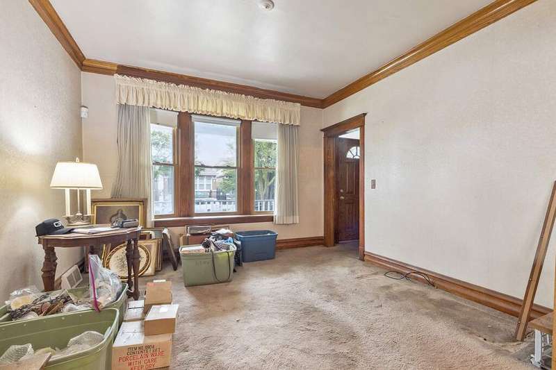 Gage Park Estate Sale!! Attention investors! This solid 3 bedroom, 2 bath brick home is ready for its next adventure. The main level boasts high ceilings, a spacious living room, formal dining room, and a large eat-in kitchen with a walk-in pantry that opens to a bright sunroom. Upstairs offers a 3rd bedroom plus an unfinished walk-in attic with endless potential. A walk-out basement with a full bath, storage rooms, and plenty of room to create additional living space. Hardwood floors lie beneath the carpet, complemented by newer windows and a newer roof. Outside, enjoy a fenced yard, welcoming front porch, and a 2-car brick garage. Estate Sale - Sold As Is.