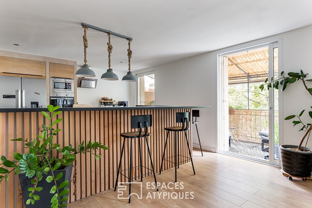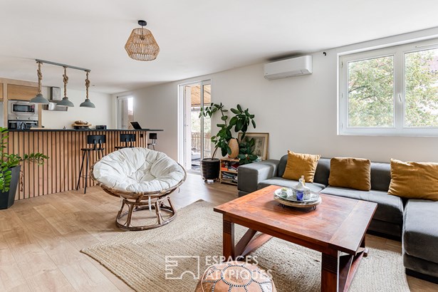 The immediate environment benefits from the proximity of shops, schools and transport, just a few minutes from Toulouse city center. This reverse duplex combines comfort and modernity. Its atypical side and its warm atmosphere make it a unique address, designed for urban life close to all amenities.