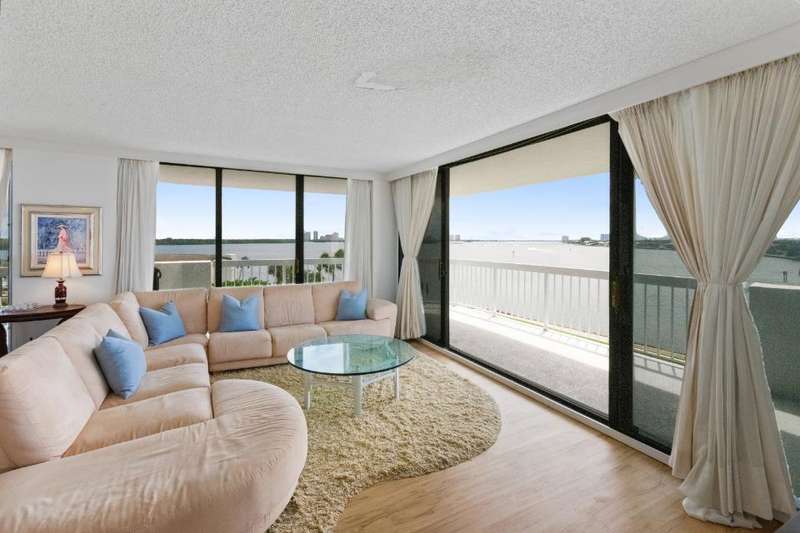 Southeast unobstructed Waterfront Views from every room in this very spacious 3 bedroom and 2.5 bath condo with wrap-around balcony. The location cannot be beat. For the buyer that does not want to be too high up, but high enough to get spectacular views. See the boats going by all day long. Enjoy sunrises and sunsets from your sunny balcony. This building is in good financial shape. Enjoy Belle's waterfront restaurant, 2 mile waterfront walking path and 24 hour manned gatehouse. Great shopping & restaurants nearby. Jack Nicklaus Signature Golf and Tennis across the street. 5 minutes to the beach. Everything is here and 20 minutes to the Palm Beach International Airport. The third bedroom was opened up to the living room, but could be put back easily.