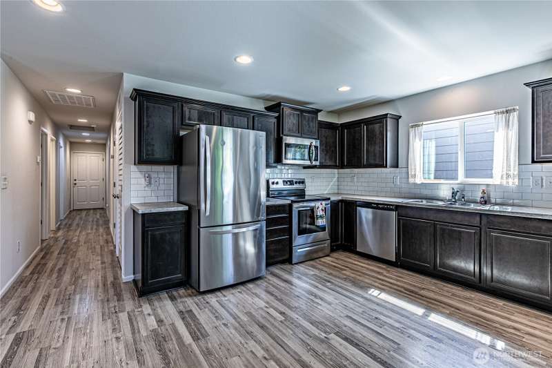BACK ON MARKET,Financing failed no fault of the sellers,inspection was clean no repairs requested,appraisal was favorable.Adorable 3 bedroom,1 3/4 bath, shy 1200 sq ft rambler located in the Rainier Ridge area of Lipoma Firs is in great condition.This home boasts a great room concept with laminate hardwoods,carpeted nice sized bedrooms and a 3/4 bathroom with an oversized shower off the primary.Kitchen has plenty of cabinets for storage,subway tile backsplash.All appliances remain with the home including full sized stacked washer and dryer.Central A/C for year round comfort. 90% high efficiency tankless water heater for almost instantanious hot water.Intimate,private backyard is open to your interpretation.Alley access to a 2 car garage.