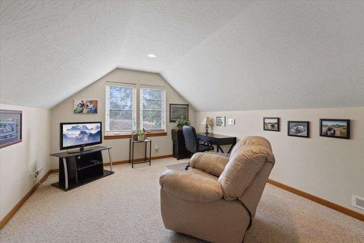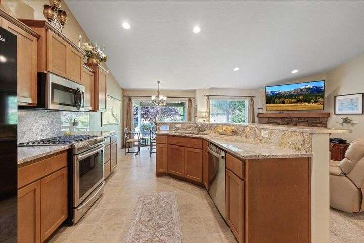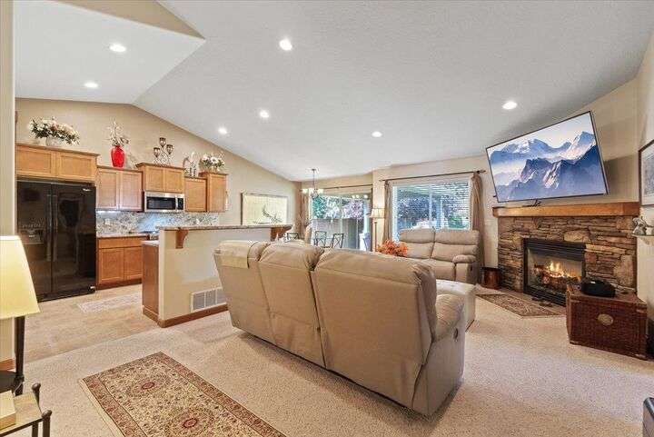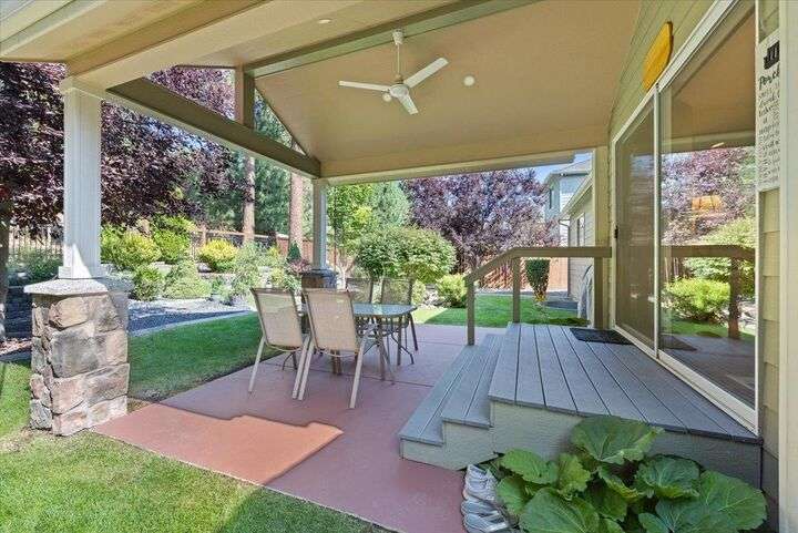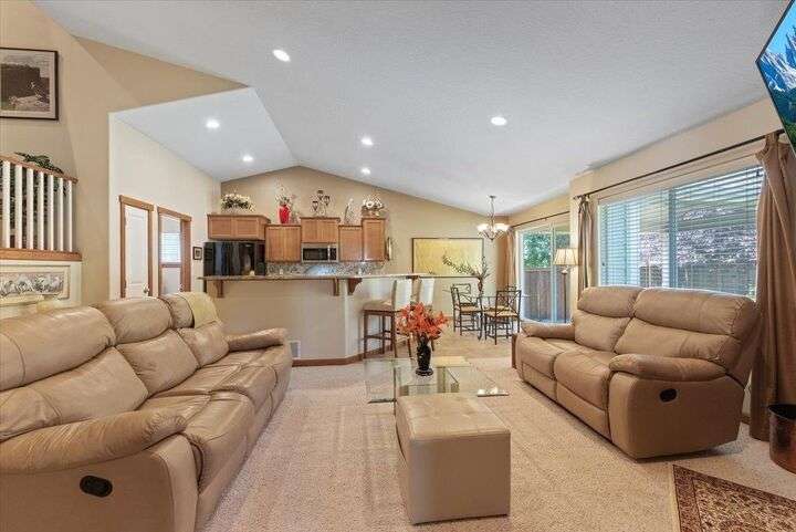 Welcome to this highly desirable North side neighborhood of Ponderosa Ridge. This picture perfect home features 6 bds and 3 full bth w/ over 3000 Sq Ft of living space. Great Room concept w/ vaulted ceilings & a gas fireplace. Bonus rm can be a bdr or family rm. Kitchen features Granite counters & back splash, newer appliances which includes a gas range, pantry, island eat bar, plus a generous dining area for your 6 person table. Enjoy your main floor primary suite that includes a full bathroom w/ double sinks, walk in closet, & a garden tub. Full finished basement boasts a huge family rm, 2 large bedrooms, full bathroom, & a storage area. Inviting Trex country front porch, concrete edging, rain gutters, + a 2 car garage. Relax in your amazingly landscaped backyard featuring a covered patio, water feature, beautiful tiered raised garden beds w/ drip lines, plus a double gate to RV parking. Private natural area behind a wrought iron fence for extreme privacy. Located just minutes from shopping and restaurants.