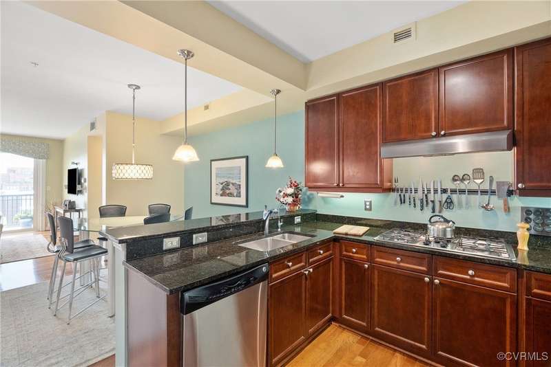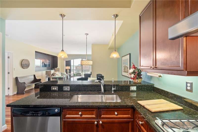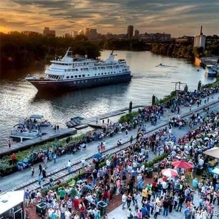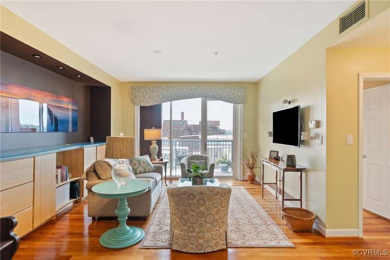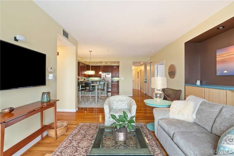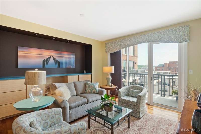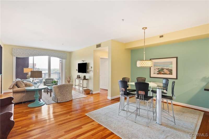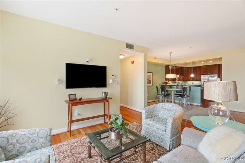 Resort-Style Living with partial James River Views! Welcome to your elegant 6th-floor condo in the prestigious Sky Line building at Rocketts Landing. This 2 bed, 2 bath + den (or 3rd bedroom) residence offers James River, & urban views with floor-to-ceiling windows in main living area coupled along with a private balcony to soak in the sunsets. Features & Highlights of this condo are: Open-concept, one-level layout with spacious, modern design. Many custom upgrades: closets, designer treatments, bamboo built-ins, speaker system, art lighting, Pur20 filtration & more. The gourmet kitchen features granite countertops, GE Profile fridge, gas cooking, custom pantry & plenty of counter space with a bar stool area for cooking and entertaining! Extra storage unit on 7th floor & 1 covered garage parking space. Pet-friendly (with restrictions) & low-maintenance lifestyle. Amenities Galore: 24/7 fitness center, 2 swimming pools which open MAY 10th & 55-slip marina with gas available. Secure, controlled-access building with dual high speed elevators! Restaurants, breweries, Virginia Capital Trail all nearby. Less than 1.5 miles to downtown Richmond, 5 miles to RIC Airport, shopping, interstates. Ask your real estate professional for the digital marketing brochure which includes the floor plan, parking, and full list of improvements (over $40K) by current owner & HOA dues information. This is the gem you have been waiting for. Come home to Rocketts Landing and live a resort carefree lifestyle.