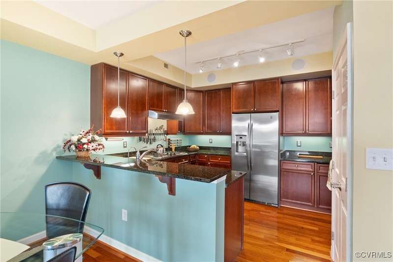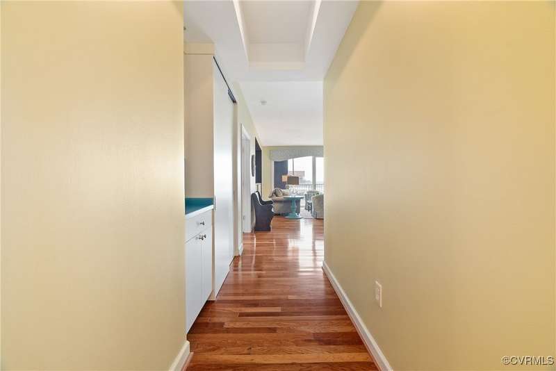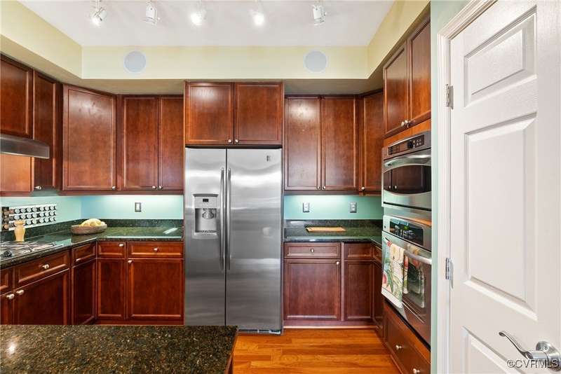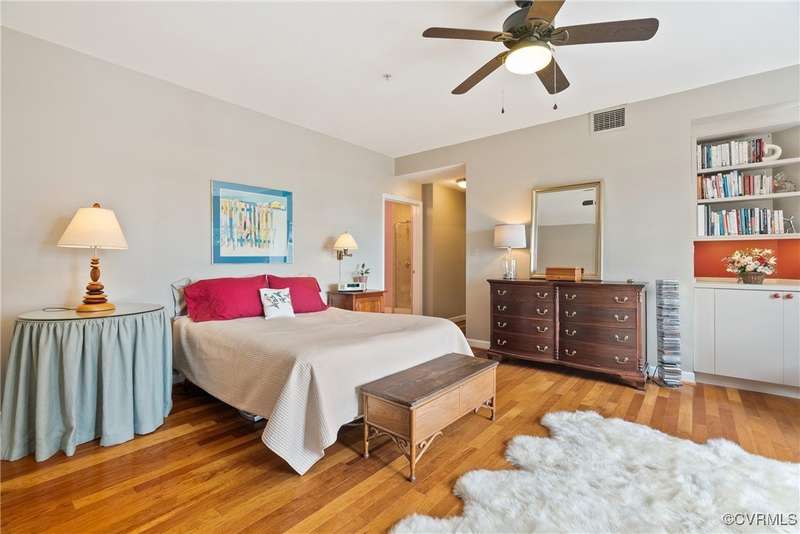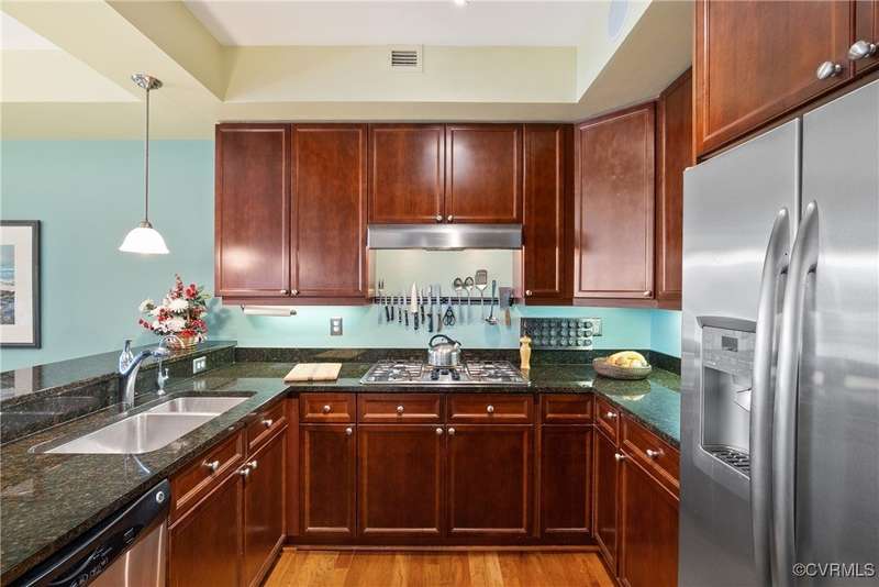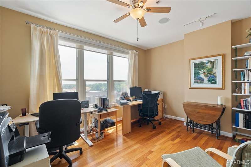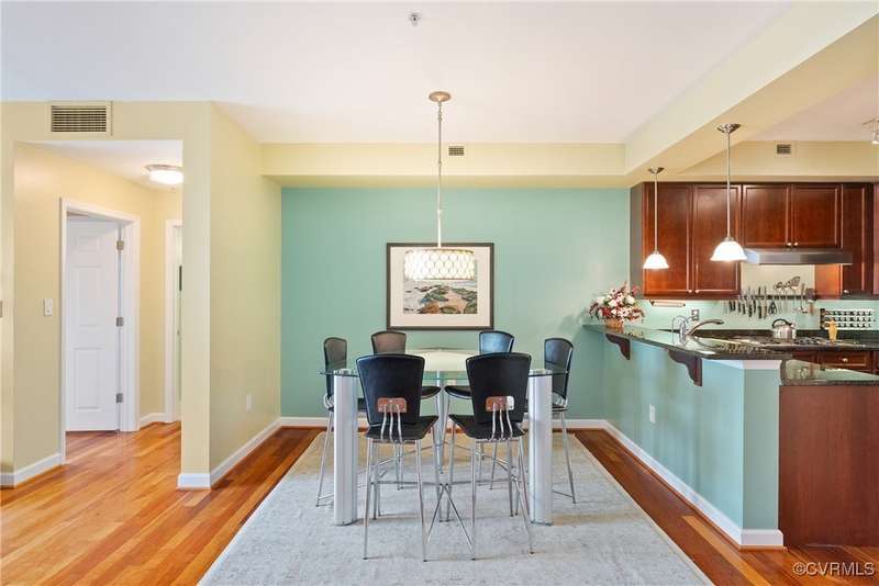 Resort-Style Living with partial James River Views! Welcome to your elegant 6th-floor condo in the prestigious Sky Line building at Rocketts Landing. This 2 bed, 2 bath + den (or 3rd bedroom) residence offers James River, & urban views with floor-to-ceiling windows in main living area coupled along with a private balcony to soak in the sunsets. Features & Highlights of this condo are: Open-concept, one-level layout with spacious, modern design. Many custom upgrades: closets, designer treatments, bamboo built-ins, speaker system, art lighting, Pur20 filtration & more. The gourmet kitchen features granite countertops, GE Profile fridge, gas cooking, custom pantry & plenty of counter space with a bar stool area for cooking and entertaining! Extra storage unit on 7th floor & 1 covered garage parking space. Pet-friendly (with restrictions) & low-maintenance lifestyle. Amenities Galore: 24/7 fitness center, 2 swimming pools which open MAY 10th & 55-slip marina with gas available. Secure, controlled-access building with dual high speed elevators! Restaurants, breweries, Virginia Capital Trail all nearby. Less than 1.5 miles to downtown Richmond, 5 miles to RIC Airport, shopping, interstates. Ask your real estate professional for the digital marketing brochure which includes the floor plan, parking, and full list of improvements (over $40K) by current owner & HOA dues information. This is the gem you have been waiting for. Come home to Rocketts Landing and live a resort carefree lifestyle.