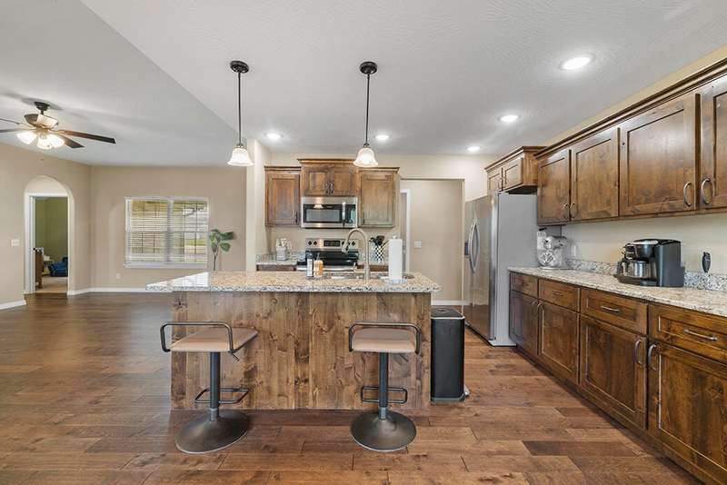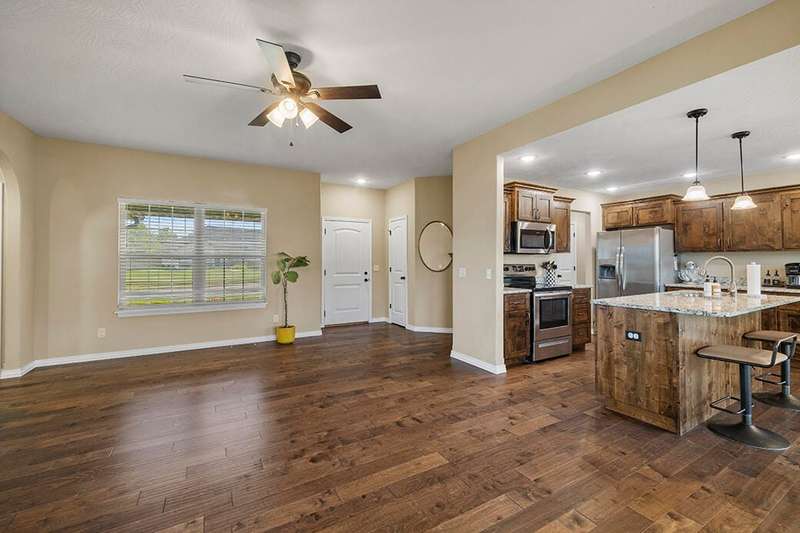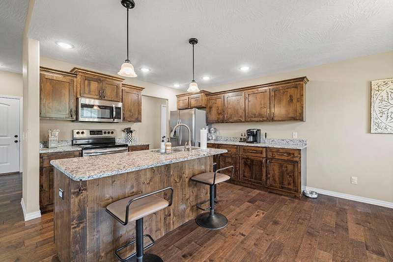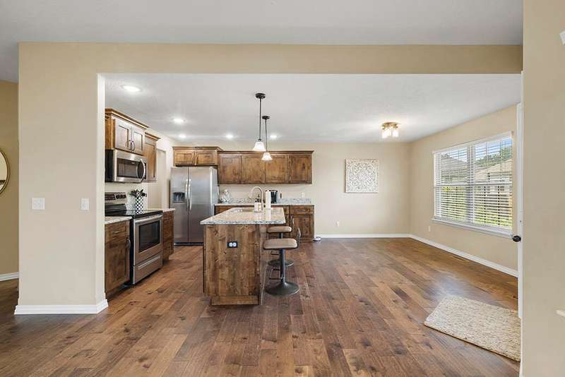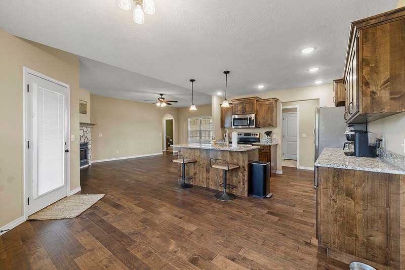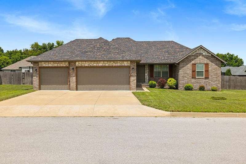 Love where you live in The Lakes at Shuyler Ridge!Built in 2020, this 3-bedroom, 2-bath home with a 3-car garage sits on a spacious corner lot in one of Republic's most desirable neighborhoods. The open floor plan features granite countertops, a large kitchen island, and abundant natural light. The generous primary suite offers dual sinks and a walk-in shower. Step out to the covered back deck perfect for morning coffee, evening sunsets, or hosting friends. Conveniently located near schools, shopping, dining, and neighborhood amenities, this move-in ready home truly has it all!