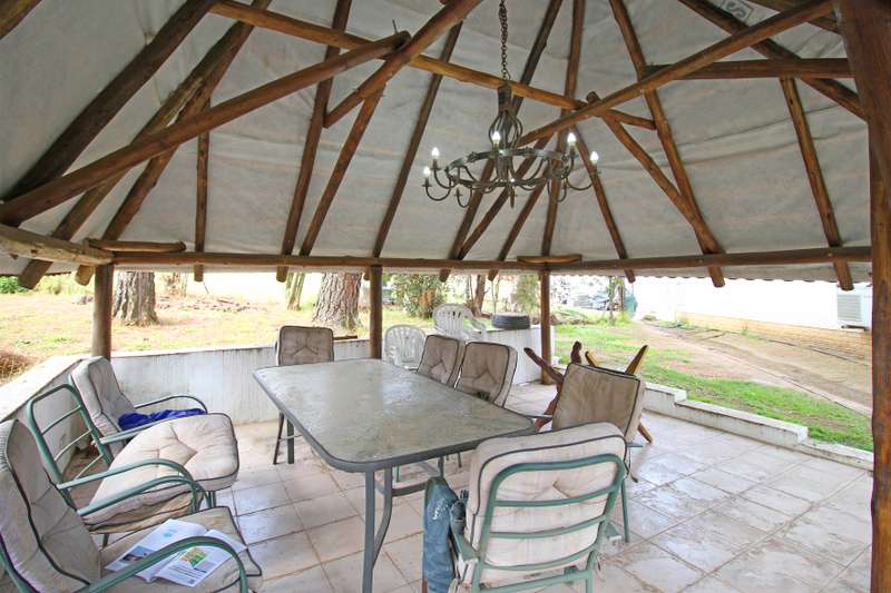 The main bedroom has walk in cupboards leading into the en-suite bathroom; bedroom flooring is laminated. The family bathroom has bath, basin, loo, and shower. The study is open into the passage and is used currently as work from home. The kitchen has place for a large fridge and wet under-counter appliance. Ample storage space / scullery and pantry, and double sink and gas stove. 2 geysers supply the house with hot water, one large, one small. The house offers the following: Tiled throughout. Fibre ready (existing fibre may be retained). Runs 100% on borehole-filtered water / not for minerals. Solar backup - 2KW panels, with 10KWh battery. Electric fence. Security key pads at the gate. Intercom system at the gate. Online CCTV. Automated gate. Alarm and armed response. Air conditioners in the living area and main bedroom. Huge back garden lawn / field – separated from the front garden by dividing fences across the property. Large fish pond. Pool with cover. Lapa overlooking the pool and garden. Attractive raised sun-patio, entering onto living area. 4 enclosed, plumbed dog kennels in the courtyard. Gardener’s toilet in the courtyard. Cottage behind the house, Tenants currently in the cottage for 6 months. Owner using the garage and garden hut for storage 1 Garage is available for the house tenants use. Weekly gardener attends to the gardens. Pine trees in the garden, and 3 bee hives (can be removed).