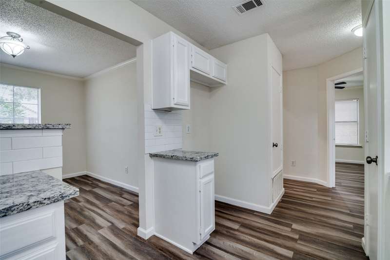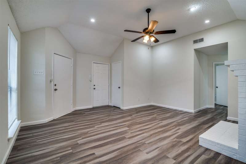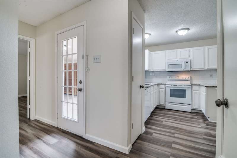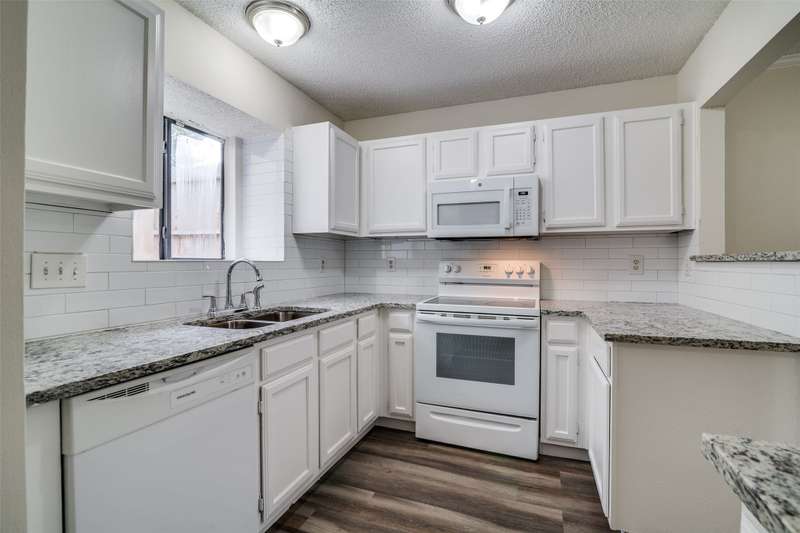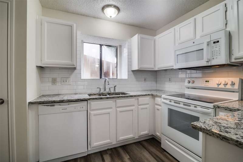 Very cozy, updated 2-bedroom, 2-bathroom home in the Samuell Park Farms East area. Neutral colors and luxury vinyl plank floors throughout the living areas. Kitchen boasts granite countertops, white subway tile backsplash, electric range and microwave. This is a zero-lot line home, but it still has a nice side yard with a lot of shade.