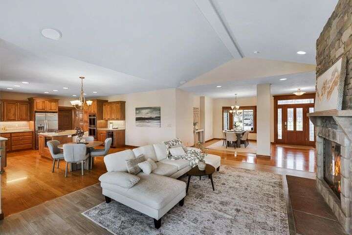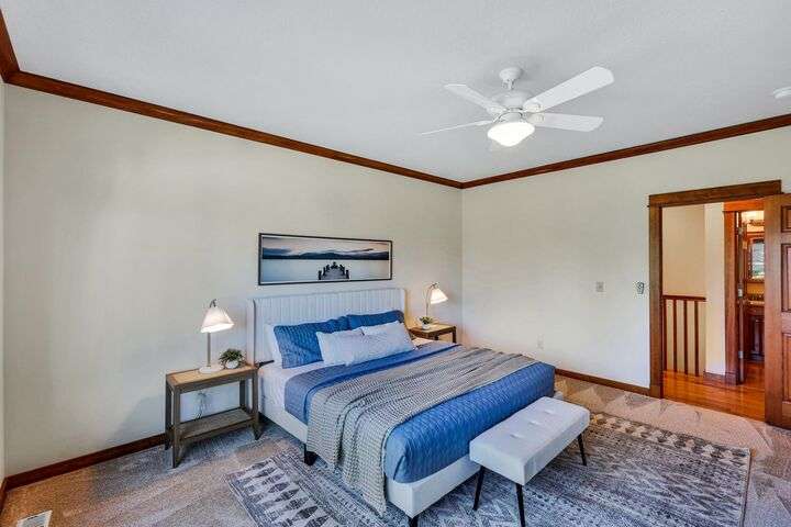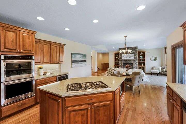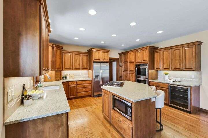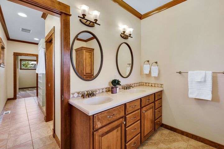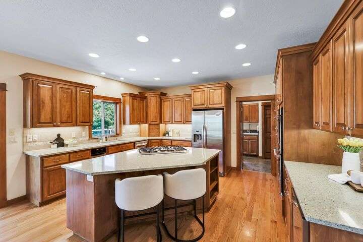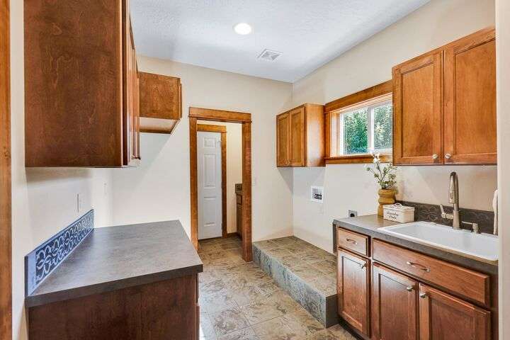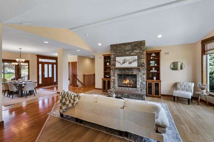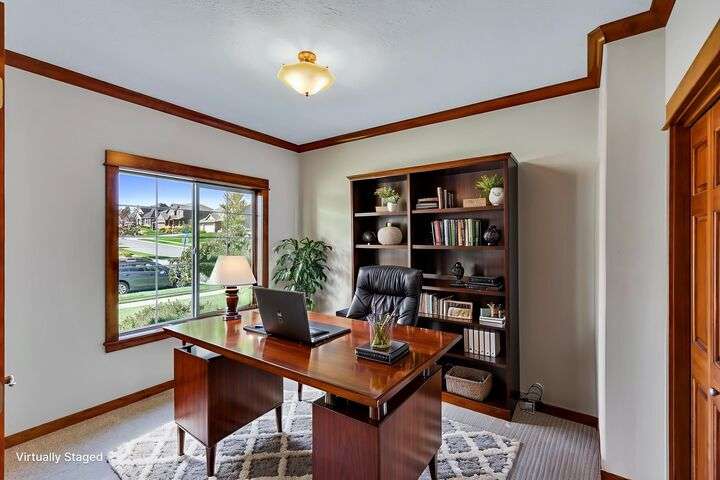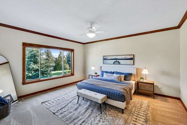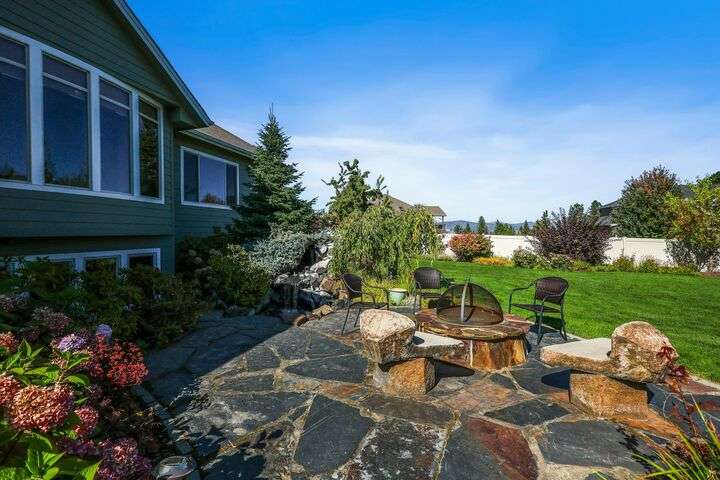 Set on a pristine ½ acre corner lot in Camden Heights, this luxury home is a rare find offering space, style, and serenity. With 4 bedrooms plus an office (optional 5th) and 4 baths, the open floor plan showcases new flooring, fresh paint, and abundant natural light. At the heart of the home, the gourmet kitchen impresses w/ Silestone quartz countertops, knotty alder cabinets, gas range, double ovens, walk-in pantry, and a generous island. Gather around the stunning wood-burning stone fireplace or entertain outdoors on the covered Trex deck w/ glass railing and views of Mt. Spokane. The primary suite is a retreat w/ a jetted soaking tub, dual vanities, walk-in tile shower, and spacious walk-in closet. The lower level offers a large family room, three bedrooms, and a guest en suite. Outside, the backyard is a private park featuring a stone firepit, cascading waterfall, raised garden beds, and horseshoe pit. With an oversized 3-car garage, mudroom access, and thoughtful updates, this home defines luxury living.