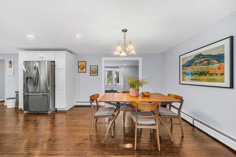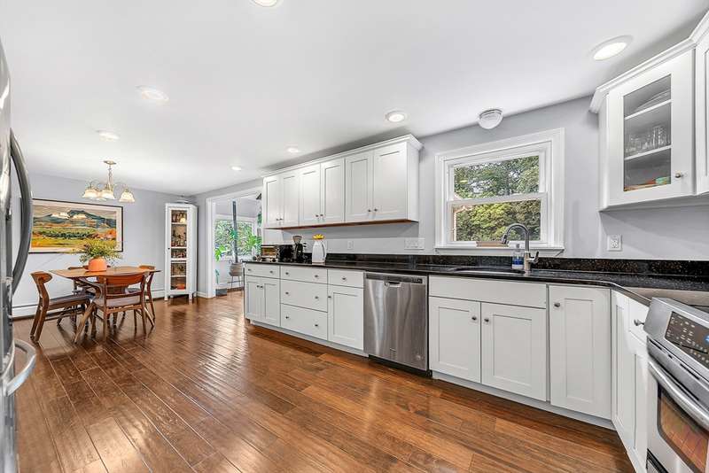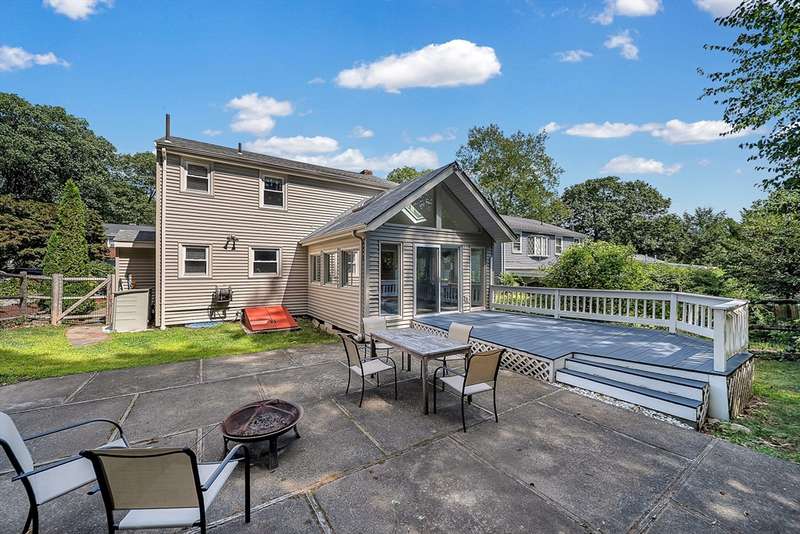 Sunny and inviting, this 4-bed, 1.5-bath colonial is nestled in the sought-after Greenlodge neighborhood. Inside, enjoy gleaming hardwood floors, fresh updates, and a great layout for entertaining. The living room features a bay window and fireplace, leading to a stylish eat-in kitchen with granite counters and stainless steel appliances. A bright sunroom with a cathedral ceiling opens to the deck and patio perfect for indoor-outdoor gatherings. A mudroom and half bath complete the first floor. Upstairs offers four spacious bedrooms with generous closets and a full bath. The finished basement adds flexible space for a playroom, office, gym, or family room. There is also a thriving pollinator garden right at the entrance, newly upgraded 200-amp electric panel and and a Level 2 EV charger. Located close to schools, major routes, the train, and great spots like Dedham Square and Legacy Place, this home blends convenience with classic New England charm.
