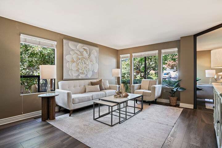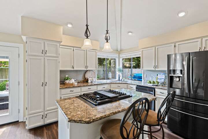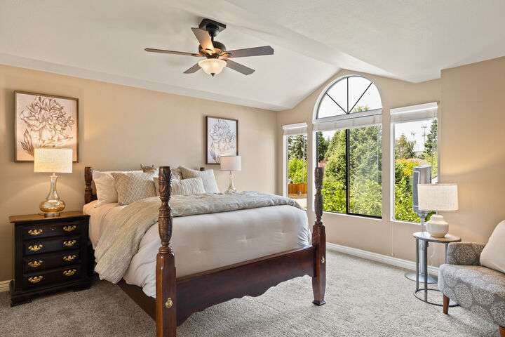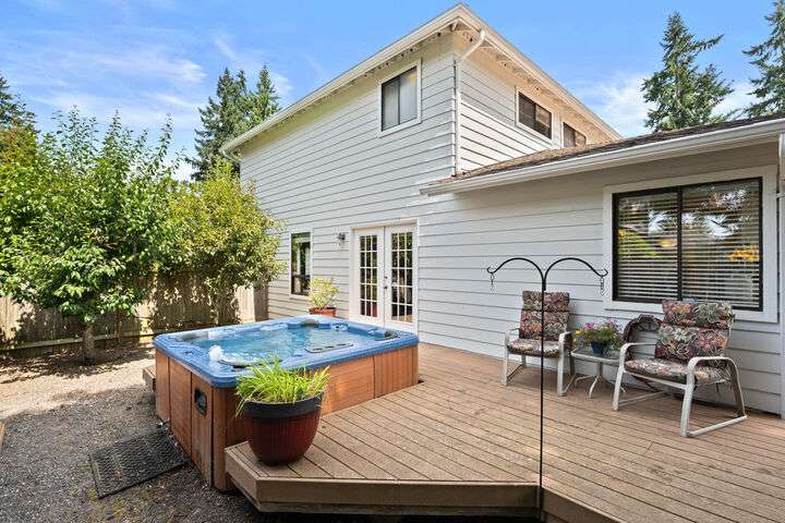 This amazing 4 bedroom 3 bath Mill Creek home is tucked in a quiet culdesac and offers the perfect blend of comfort and convenience, just minutes from top schools, parks, restaurants, shopping, and bus line. You can't beat the ideal floor plan with main-floor bedroom and full bath ideal for guests or an at-home office. This home has two main floor gathering areas, which is a bonus, with the living room/dining room area plus a family room with a cozy fireplace. The south facing kitchen offers newer appliances, dual oven, granite countertops, gas cooktop and French doors to the outdoor living area. Outside offers fruit trees, hot tub, gazebo, shed, and gate to a private park. You will not find a home and yard combo like this anywhere else!