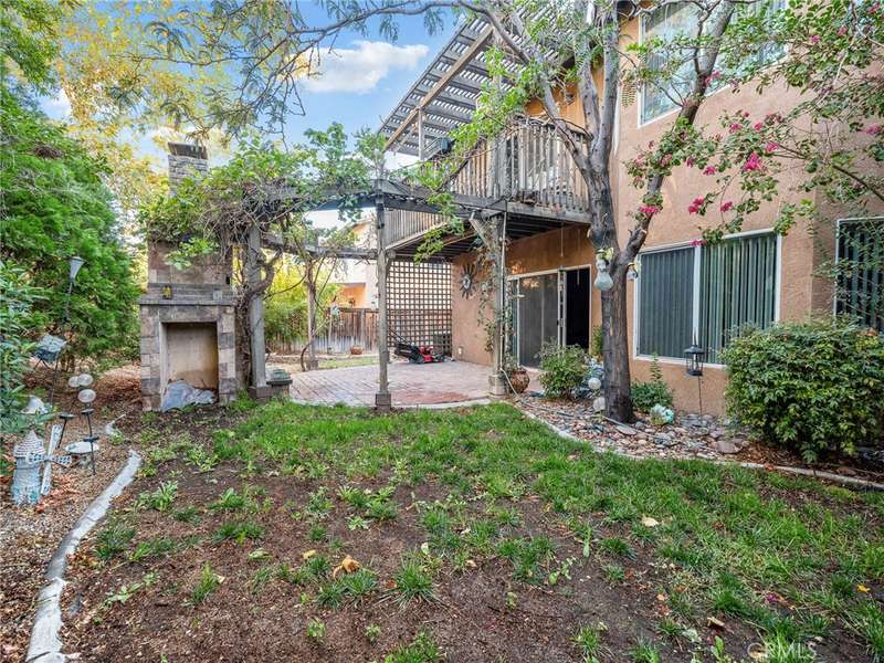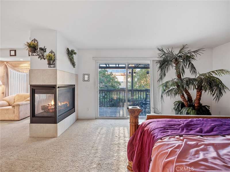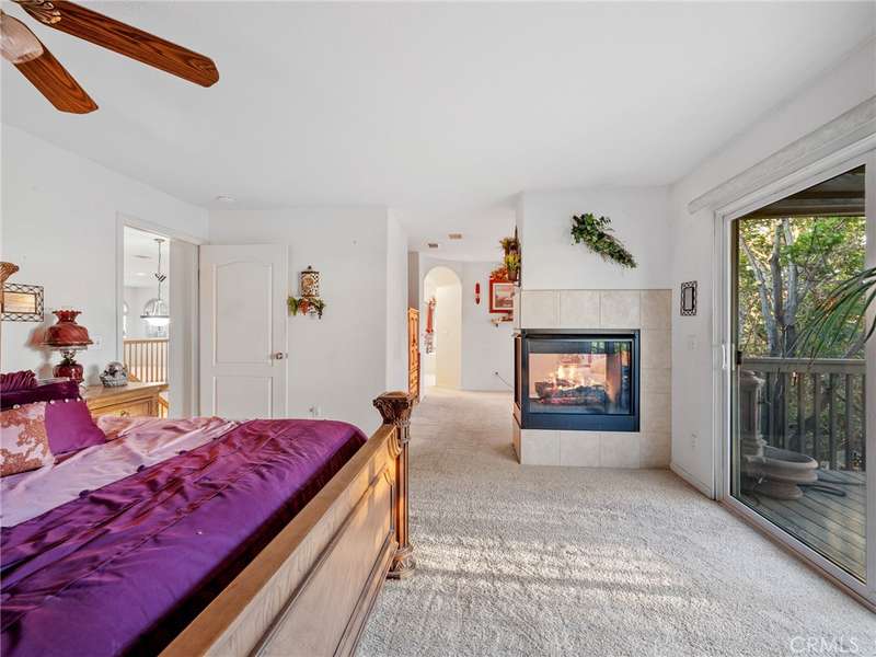 The luxurious master suite offers a private retreat with fireplace, balcony access, and views of the lush backyard. Upstairs you'll also find a large loft, three additional bedrooms, and a full bath. A separate laundry room adds convenience.