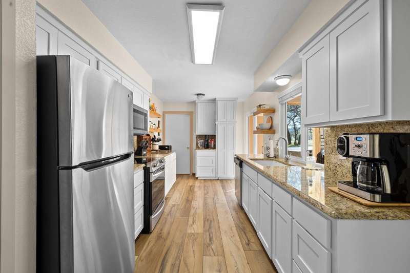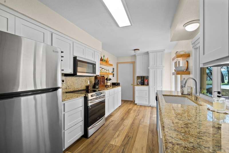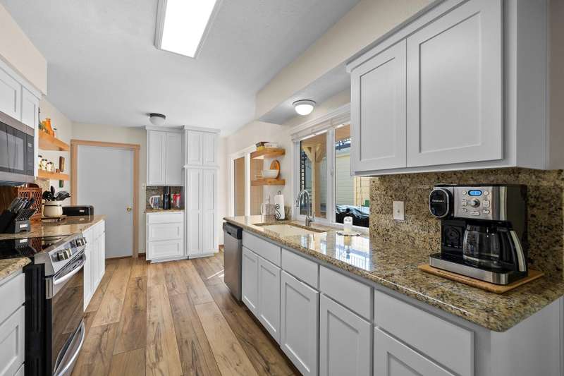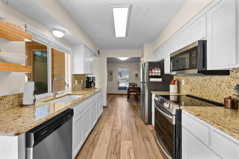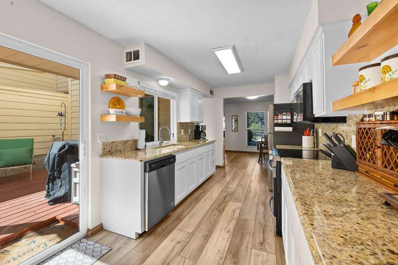 3 Bedroom updated condo on Slick Rock Golf Course, with attached garage and outdoor living spaces. Enjoy a quiet setting in this updated condo. Fresh kitchen including cabinets, countertops and all appliances. Great, easy-care flooring with no carpet upstairs or down. Updated windows and hvac. Lives like a townhome. Lots of closet space. Easy-living outdoor space off the kitchen and upstairs overlooking the trees and golf course. The size, updates, and location add up to a great value for well under $300K!