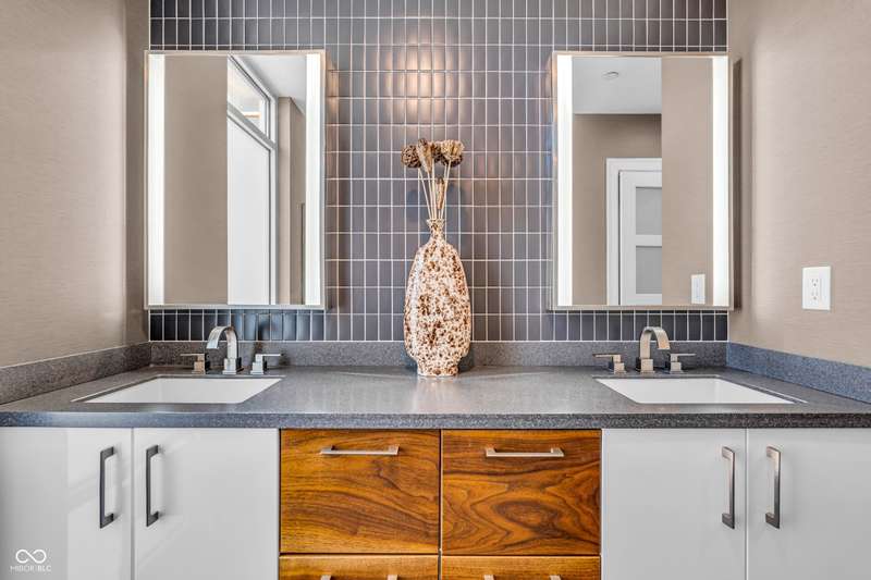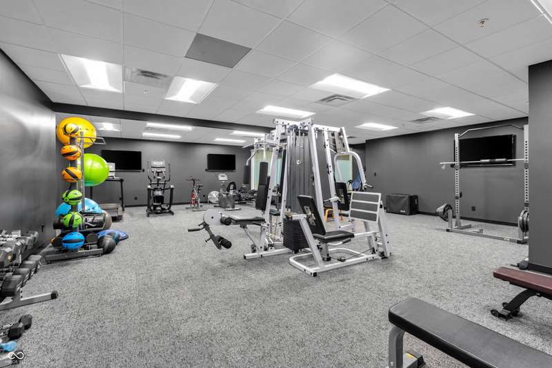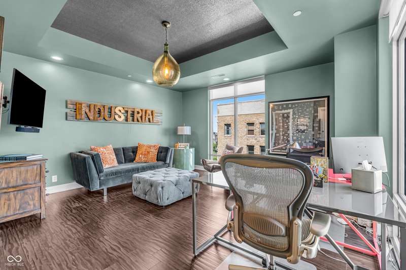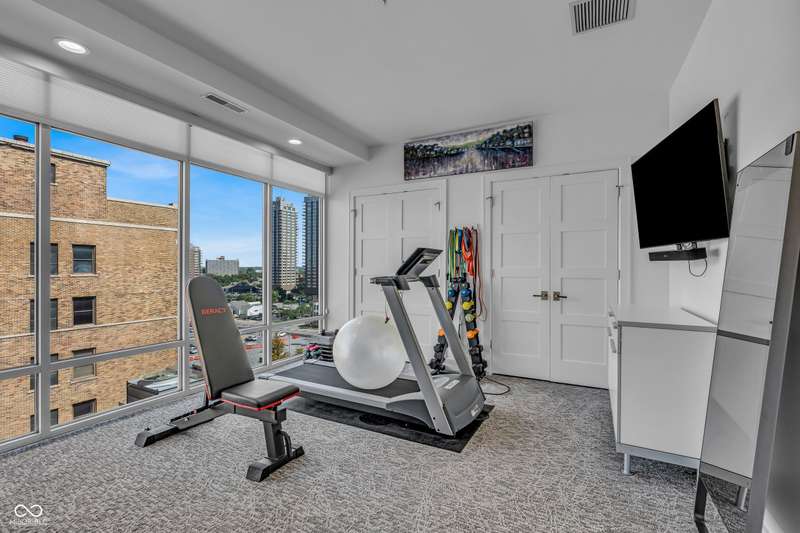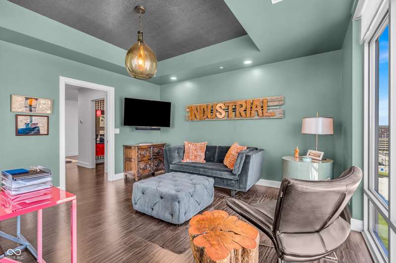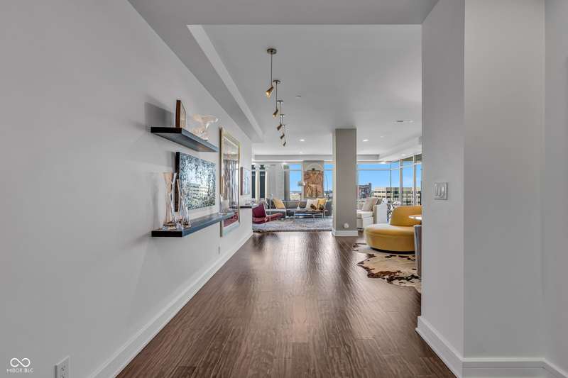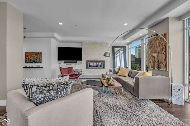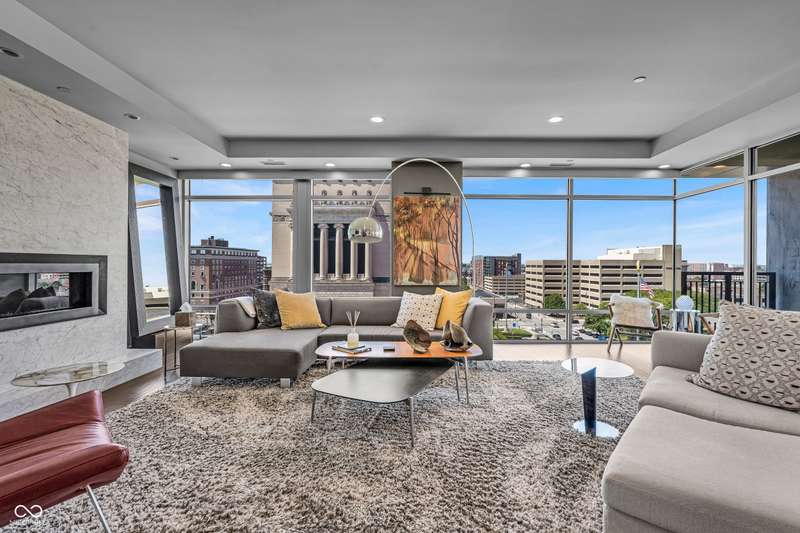 THE premier location in downtown Indy combined with unmatched expansive views makes this a MUST see property. Three bedrooms and two and 1/2 baths sets the stage for sophisticated living at its finest. Your journey begins: exit the secure elevator on the 8th floor, walk down the well decorated (and quiet) hallway to your oasis in the sky. As you enter this magnificent unit, you are first awed by the incredible views! You then turn your focus to the tastefully done lighting and wall mount display racks (art lover REJOICE!!!). The living/dining/breakfast areas are your personal canvas for creating distinct zones for relaxation and entertainment! The kitchen offers true functionality for all your culinary creations with an oversized island with seating for four. Step outside to the northwest facing patio to enjoy endless sunsets, incredible downtown views and oh btw - there is NO better view of the 500 festival parade that literally travels right below your feet! Three well appointed and well designed bedrooms are the perfect retreat for family and guests alike. The primary suite (perfectly located within the unit) features a huge walk-in closet, custom wall coverings and well positioned lighting to ensure peace and tranquility when it's time to retire. The primary bathroom is a spa lovers dream with dual sinks, a large walk-in shower and an oversized tub that is that is just what the doctor ordered after a great workout or long day at the office. The two guest bedrooms (one features a Murphy bed) share an J&J bathroom with dual sinks, oversized walk-in shower and a water closet. The art-deco 1/2 bath is ideally located for easy access. The utility/laundry room features plenty of space for full sized w/d units. Two assigned parking spots - ideally located right next to the pedestrian exit of the garage. This one of a kind property truly offers the best of all worlds. Located literally steps from Mass Ave and an easy walk to all that downtown offers, it is a MUST see.