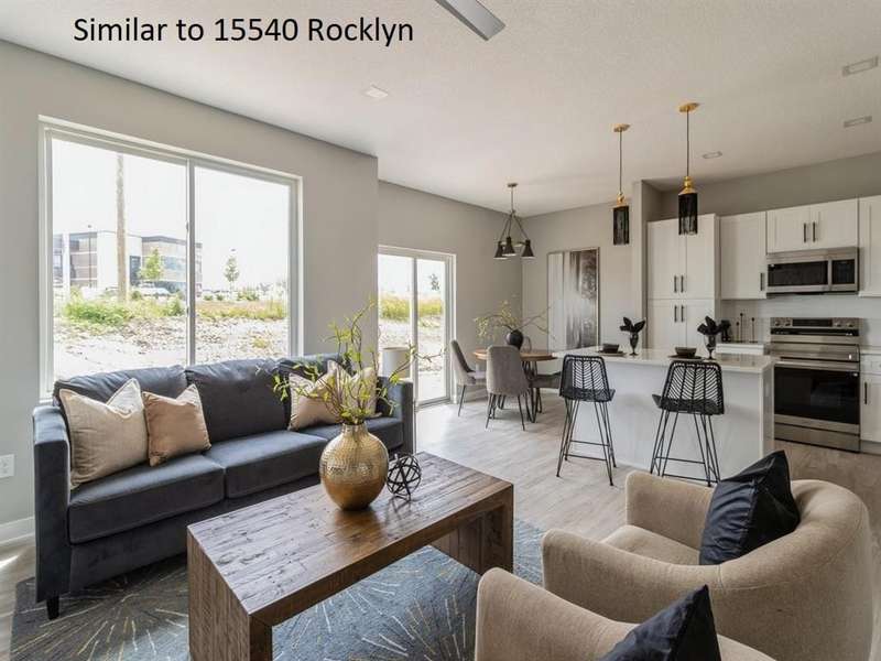 Huge Price Reduction before Holidays, so you can enjoy Holidays in your new Home !!!Luxurious,ONE OF A KIND!!See to believe,4 Brs 2sty,Middle Unit Townhome in Clive.Combined Square footage totalling 2445 makes these so spacious.Open metal Railing to basement and second floor,9ft ceilings on Main,10ft in Primary Bedroom,LVP all on main floor,Great room with fireplace,kitchen with stainless steel appliances.All appliances included,including Fridge,washer and dryer.Sliding doors off Eat in Area to Maintenance free deck.Second floor boasts spacious Primary Bedroom suite with covered deck/Balcony,bringing in natural light,double vanity,tiled shower,nice size walk in closet.Other 2 bedrooms are good sized,one with walk in closet.Conveniently located 2ndfloor laundry.Hosts your guests in family room in finished basement with fireplace.4th bedroom and full bath.Quality through out Anderson windows,Hardi Plank siding,Cat 6 wiring,Composite Deck,Irrigation,MyQ Smart Garage key pad with camera,as well as camera on garage door opener,option available to get Electric car charger outlet.GARAGE SIZE 18.10X22.5,makes it easier to park a bigger vehicel.No closing costs with Preferred Lender.Close to school,Park,shopping.HOA includes High Speed Internet.(Photos are for staged 15536 Rocklyn Pl,all plans are similar,with few changes like light fixtures,mirrors,fireplace tile etc).