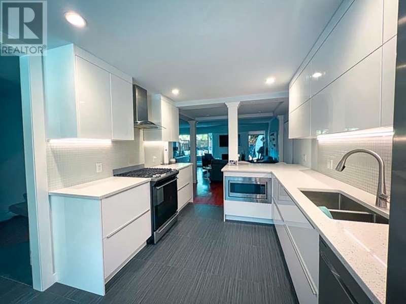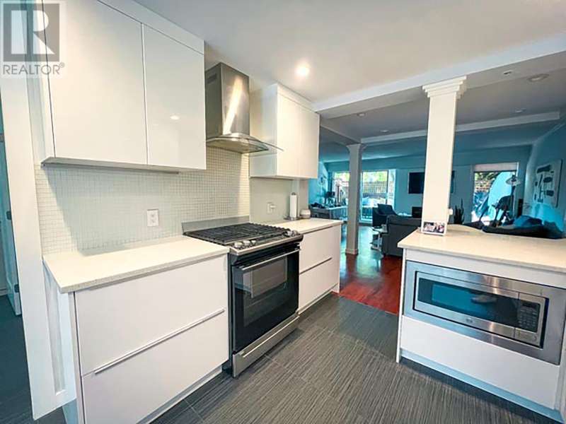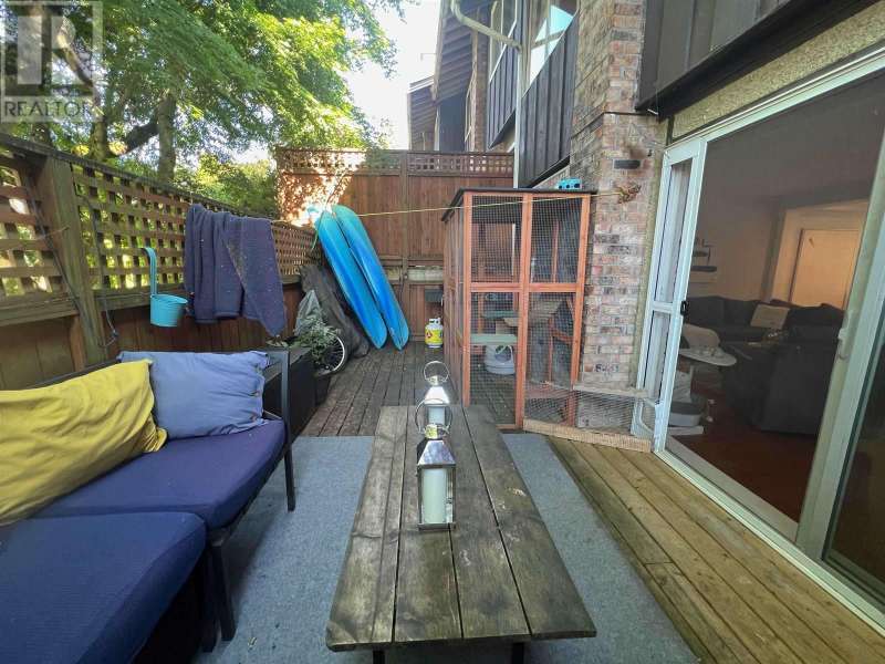 Welcome to this spacious 4-bedroom, 3-bathroom townhouse in the highly sought-after Cedar Brooke Village, located in vibrant Upper Lonsdale. This beautifully updated home features a modern main floor with an upgraded kitchen, bathroom, and convenient laundry area. Enjoy elegant hardwood floors, a cozy gas fireplace, and generously sized bedrooms upstairs, including a primary suite with a private en-suite. The west-facing ground-level unit boasts a fully fenced, private balcony-perfect for relaxing or entertaining. Surrounded by lush common gardens, the complex offers a full-sized outdoor pool and a welcoming community feel. Ideally situated within walking distance to top-rated schools, scenic trails, Westview Shopping Centre, and local recreation facilities. A perfect blend of comfort, style, and convenience-this home has it all! (id:58403)