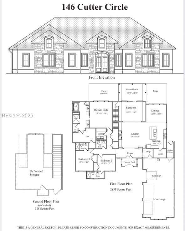 Welcome to this elegant, nearly 2860 sqft ranch style home with staircase to attic and optional rec room adding another 330 sqft. This custom home is under construction and features 3 bedrooms, 3 1/2 baths, 2 car garage plus golf cart garage, fireplace and a covered patio backing to woods on more than 1/3 acre lot. Eight (8) foot tall double wrought iron front entry doors welcome you to the foyer with two (2) decorative art niches, 12 foot ceilings in the living room and kitchen. Rare opportunity to build on one of the last remaining lots in Riverbend!!!