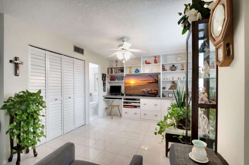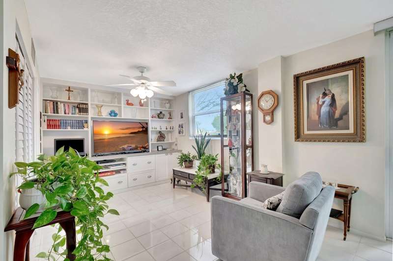 Enjoy your beautiful garden view while sipping coffee from your lanai. Welcome home to this lovely 1st. floor unit in desirable Boca Teeca Community. This 55 plus move in ready 1300 sq.ft. home features ceramic tile floors and updated kitchen and bathrooms. . The combination of modern upgrades, spacious living areas, and hurricane impact windows makes it both comfortable and secure. The option for a den or third bedroom adds versatility, which is always a plus. Located in a secure building just minutes away from beaches, upscale shopping and award winning dining, Currently under development is BOCA PADDLE. within walking distance this $20 million dollar facility offers a high-end social lifestyle destination enhancing your daily experience and the long term value of your investment