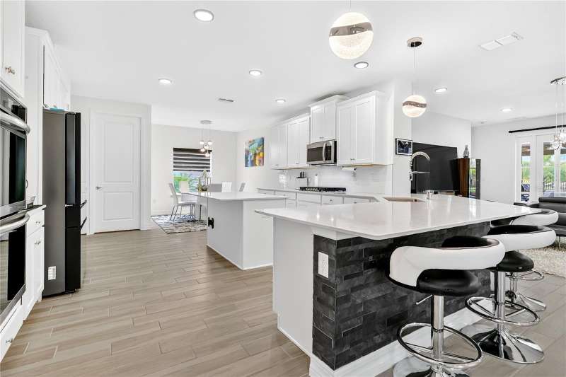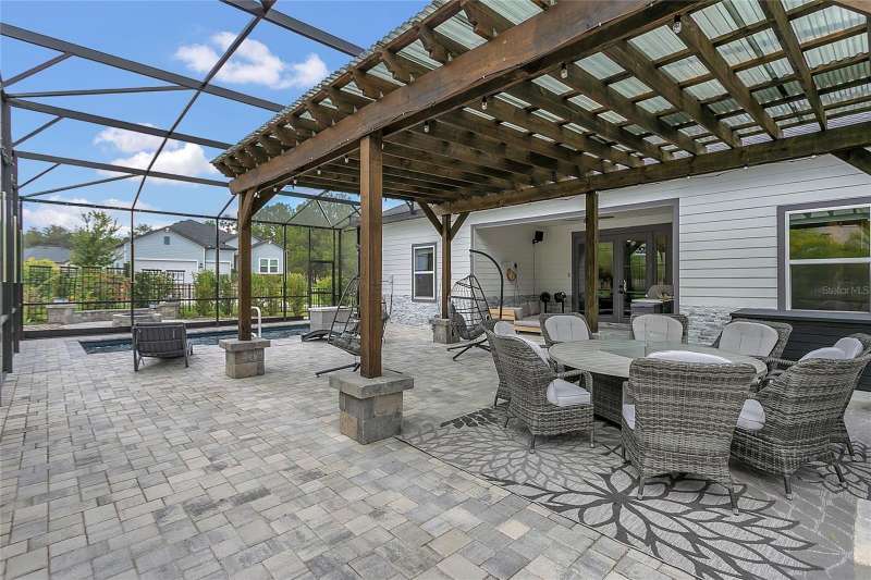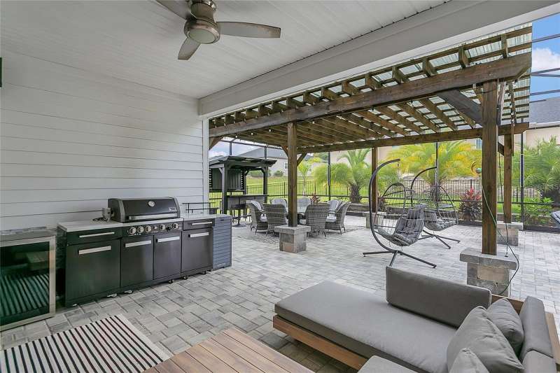 Welcome to Bellechase, one of Ocala’s most exclusive and sought-after guard-gated communities, known for its winding streets, mature oaks, and peaceful atmosphere. This stunning corner-lot, 4-bedroom, 3-bath home with a bonus flex room is the perfect blend of elegance, comfort, and Florida living at its finest. Every inch of this property has been fully upgraded, offering a home that feels brand new from the moment you pull into the full paver driveway, framed by lush professional landscaping and custom stonework that gives the home incredible curb appeal. Inside and you’re greeted by an open floor plan designed for today’s lifestyle. The spacious living area flows seamlessly into the heart of the home — a modern, fully upgraded kitchen with new stainless-steel appliances, custom cabinetry, and upgraded lighting throughout that ties everything together. The flex room, just off the main space, is perfect for a home office, formal dining area, or playroom, giving you the versatility to make the space fit your family’s needs. The primary suite is a true retreat, featuring a spa-inspired bathroom with double vanities, a soaking tub, and a large walk-in shower. A second ensuite bedroom provides the perfect setup for guests or in-laws. Throughout the home, you’ll find modern lighting upgrades inside and outside, beautiful flooring, and attention to detail that brings a clean, fresh look to every room. Outside you'll see what makes this home truly one-of-a-kind. The expansive outdoor living area is designed for year-round enjoyment—whether relaxing with family or entertaining guests. Enjoy your brand-new saltwater pool, surrounded by a fully screened patio and an oversized pergola-covered area perfect for lounging in the shade. Fire up the outdoor kitchen for weekend barbecues, gather around the custom fire pit on cool evenings, and take in the resort-style landscaping that surrounds the entire property—a $50,000+ investment in landscaping alone! Additional features include an EV charger hookup in the garage, modern new exterior lighting, and the peace of mind that comes with living in one of Ocala’s most desirable and secure neighborhoods. Bellechase offers wide streets, beautiful walking paths, and a true sense of community, all just minutes from top-rated schools, fine dining, shopping, and some of Central Florida’s most beautiful natural areas. This is more than just a home — from the high-end finishes to the amazing outdoor spaces, every detail has been designed for comfort, style, and lasting enjoyment. Don’t miss your chance to own this incredible property in Bellechase — homes like this do not come along often!