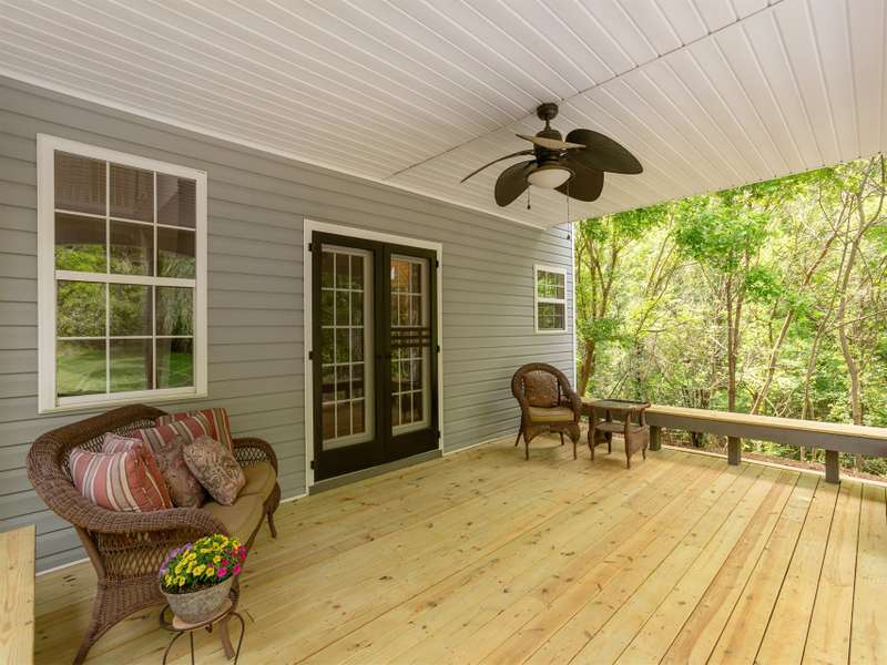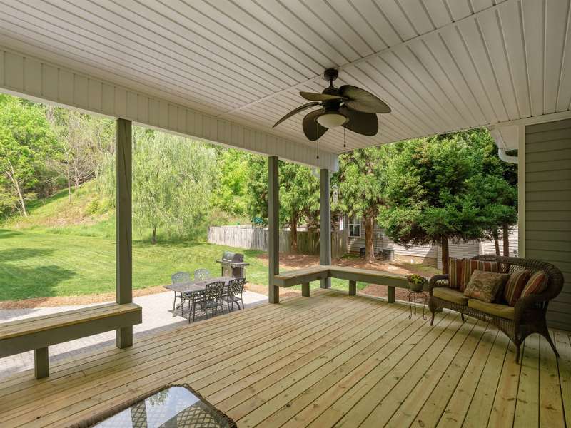 Welcome to the perfect blend of privacy, comfort, and convenience-just minutes from Asheville and Hendersonville! This roomy 5-bedroom, 3.5 bath home has hardwood floors on the main level, luxury vinyl upstairs, and ceramic tile in the baths. Ceiling fans in every room keep things comfortable year-round, and large windows bring in plenty of natural light. Step out to the covered back deck and enjoy your own private, beautifully landscaped backyard complete with a custom fire pit-perfect for springtime dinners under the stars or cozy fall bonfires with friends. You'll love the recent updates, including fresh paint, 2 new HVAC units, a 2025 tankless water heater, remodeled decks, and 30 solar panels (with warranty!) to help with energy savings. The neighborhood offers a welcoming community pool and grilling pavilion, and its location to the airport makes travel a breeze... A rare find, convenient, stylish, and sustainable-just waiting for you to make it yours!