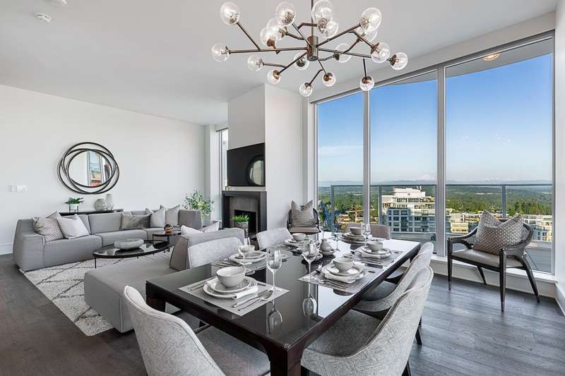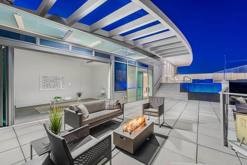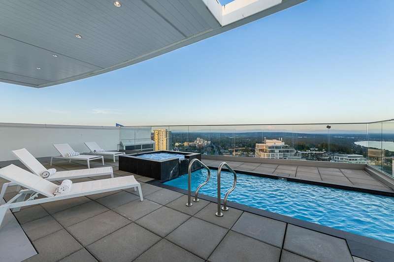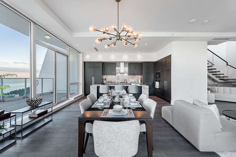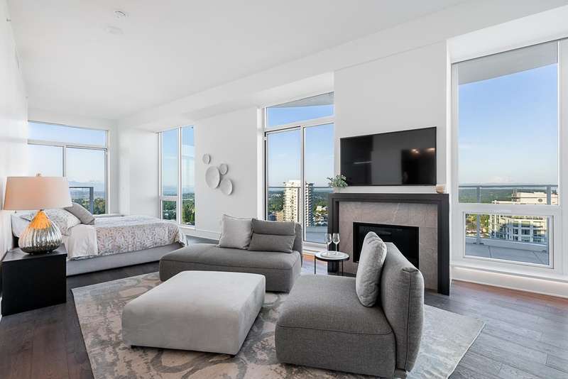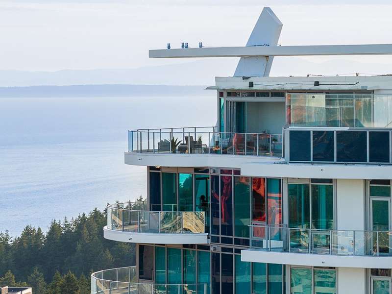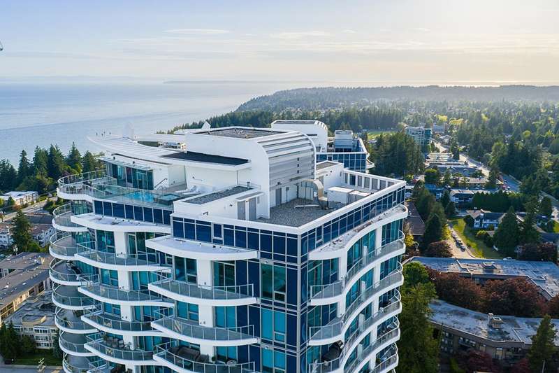 Experience the pinnacle of seaside-urban living in this 2-story Penthouse at White Rock’s Foster Martin. Stunning 3,800 sqft residence features 4 spacious bedrooms, 5.5 baths, a den, flex area and an upper loft suite. Revel in the panoramic ocean and mountain views, soaring 11’ ceilings, floor-to-ceiling windows, a chef's kitchen with Miele appliances, spa-like baths, and luxurious finishings throughout. Enjoy 2,400 sqft of outdoor living with 4 main floor balconies and a spectacular rooftop deck with cascading waterfall hot tub and pool, fire table area, and outdoor kitchen rough-in. Includes a private triple garage with storage and resort-style amenities: indoor/outdoor pool, sauna/steam room, gym, lounge, games room and concierge. The perfect harmony of luxury, location, and lifestyle!