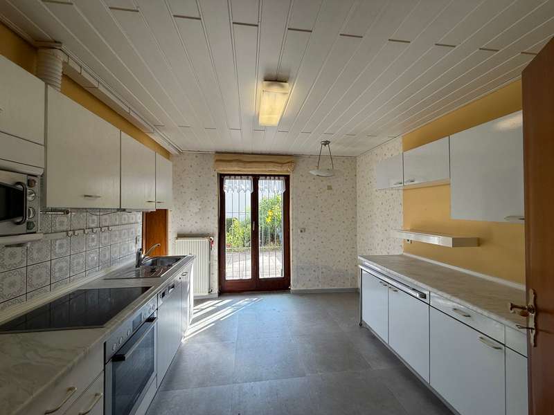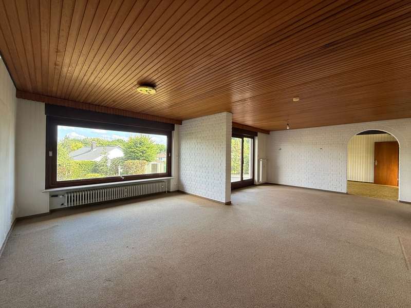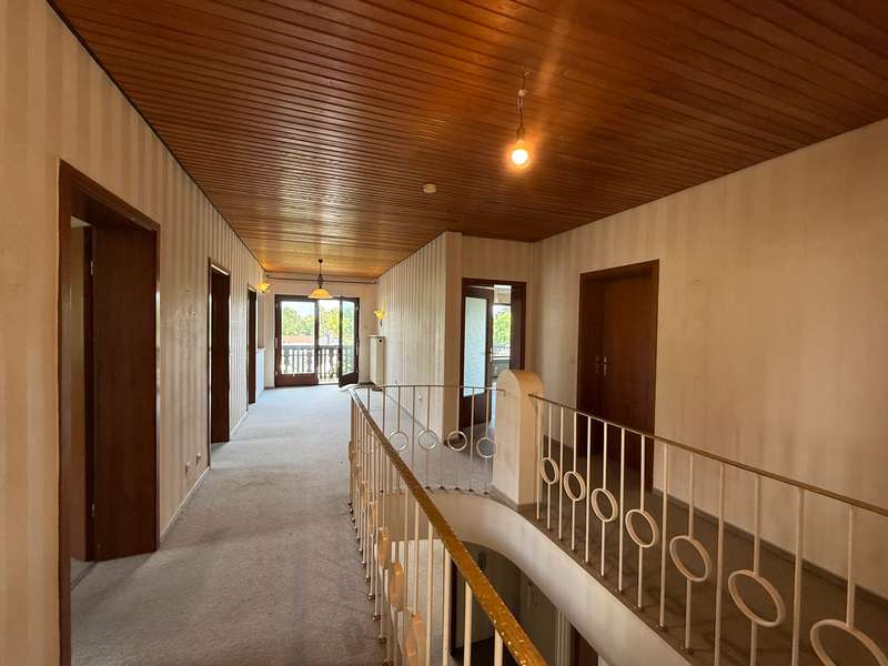 This detached house with a wonderful large garden is quietly situated at the end of a cul-de-sac. Nestled in a good neighborhood, the house is waiting for a new start - a house with charm and soul. Anyone who appreciates architecture will bring a pearl to new life here and create a loving home. The extraordinary house from 1974 has a spacious hallway. From here you can access the rooms for individual use with all options - for sleeping, working or as a guest room. A spiral staircase leads to the large and bright living room, which is open plan with a transition to the dining room and adjoining kitchen. The house impresses with its spaciousness, the windows allow the view to wander outside. As a family home, sufficient bedrooms have been provided and there are four beautiful rooms on the upper floor, two of which face the garden, as well as a bathroom. From the living and dining room, you have access to the terrace and the garden. The view from here is also wonderful. The garden is beautifully mature and the view to the right and left extends into other gardens. Welcome to an exceptional family-friendly home.