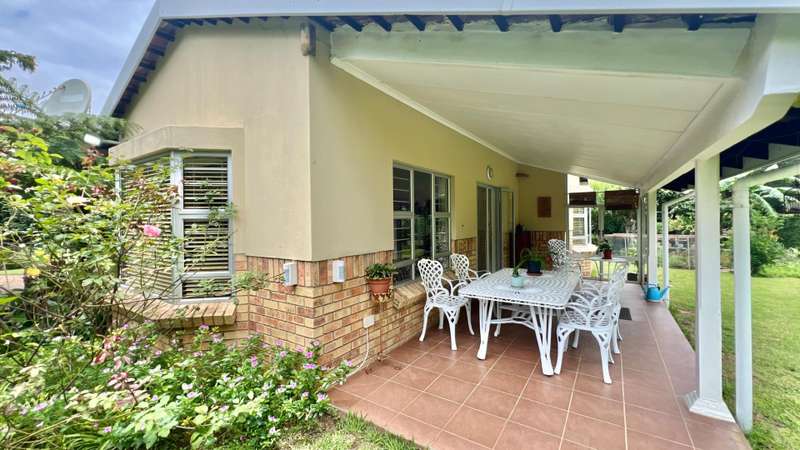 Perfectly Balanced Modern Townhouse for a Family or Retirees ***Please take the time to watch the video tour*** Discover this beautifully maintained 3-bedroom, 2-bathroom modern home, offering an ideal living space for young families or those looking to downsize. Nestled in a quiet cul-de-sac in the heart of Umtentweni, this property is both peaceful and practical. The open-plan living area is designed for both comfort and style, featuring a bay window that adds charm and elegance. The lounge flows seamlessly onto a spacious undercover patio, providing the perfect spot to relax while enjoying views of the landscaped garden and tranquil koi pond. The modern kitchen, equipped with a gas hob, blends effortlessly with the dining room, creating a space perfect for entertaining. Sustainability is at the forefront with 10,000-litre backup water system, ensuring uninterrupted convenience. Additional features include a double automated garage with a storeroom, a separate laundry, built-in cupboards in all bedrooms, and enhanced security with an alarm system and beams. The seller has set a price for the house, the solar can either be included in the sale or taken off with a reduction in price. This property is move-in ready and caters to all your needs for modern, secure, and comfortable living. View by appointment only.