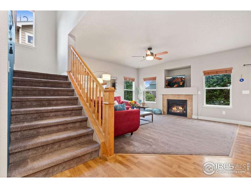 Curb appeal, craftsmanship, and comfort come together in this quality-built Westmark home, ideally situated in the heart of Timnath Ranch. Step inside to a vibrant and welcoming open-concept layout that blends everyday comfort with timeless style. The spacious kitchen features a large granite island, rich Tharp alder cabinetry, and stainless steel appliances. The light-filled living and dining spaces are anchored by a cozy gas fireplace and easy access to the private patio. The main floor also includes a dedicated study and laundry room for added convenience. Upstairs, retreat to the generously sized primary suite with vaulted ceilings, a 5-piece bath, and a large walk-in closet. Two additional bedrooms share a Jack-and-Jill bath, perfect for guests. The finished basement offers a spacious rec room ideal for movie nights, a wet bar, and a fourth bedroom with a full bath. Enjoy a fully fenced yard, patio, garden beds, and 2-car garage with alley access. Just steps from Bethke Elementary and close to all the top-tier amenities Timnath Ranch has to offer-clubhouse, two pools, pickleball courts, trails, and community park. Pre-inspected and one-year First American Home Warranty for peace of mind.