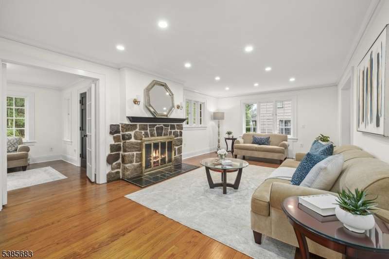 Stunning updated residence set on a rare 1/2 acre, park-like lot in Millburn, offering a blend of timeless charm and modern sophistication. A newly paved driveway leads to the oversized 2-car garage and a welcoming covered front porch. Inside, the home is bathed in natural light and designed for both grand entertaining and comfortable everyday living. The main level unfolds with a sun-filled den, an expansive living room anchored by a striking fireplace, and a gracious dining room. At the heart of the home, the kitchen is both elegant and inviting, showcasing bespoke cabinetry, premium stainless steel appliances, expansive stone counters, and under-cabinet lighting. A cheerful breakfast nook and seamless connection to the oversized deck make it ideal for everyday living and effortless entertaining, with serene views of the private, deep backyard oasis. Upstairs, three generously sized bedrooms and two full baths provide restful retreats. The private office/loft, off the kitchen and overlooking the dramatic double-height family room with skylight, enhances versatility. A lower-level bedroom with a full bath makes this home ideal for more living quarters. Perfectly located just steps from the Millburn Train Station, library, top-rated Millburn schools, and the vibrant downtown, and directly across from South Mountain Reservation, this residence offers not just a home, but a rare opportunity to embrace a luxury lifestyle where city, suburb, and nature meet seamlessly.