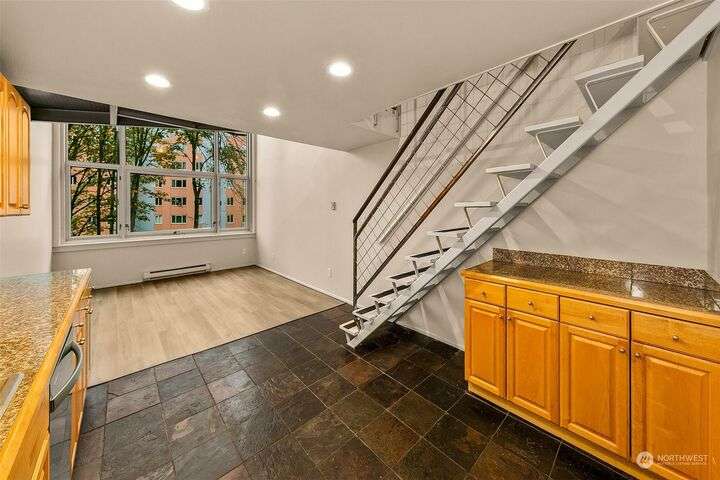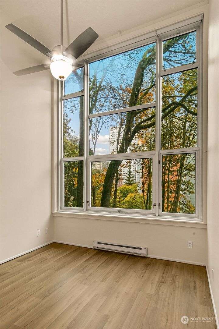 Own a piece of Seattle’s iconic mid-century architecture at the 1965 Talisman designed by Kieth Nissen. Tucked away down a quiet street lined with big leaf maples at the base of First Hill, just steps from Downtown and Capitol Hill, discover a light-filled loft style 1-bedroom condo with soaring 14’ ceiling, updated flooring and new high efficiency window wall illuminating the entire SW-facing space. Building features secure fob entrance, elevator, gym, sauna, laundry room and storage. Whether it’s an in city pied-à-terre, full time urban launch pad or coveted rental, relish this classic concrete and steel, pet-friendly building with easy access to dining, shopping, entertainment and medical with a WalkScore of 99 and transit score of 100.