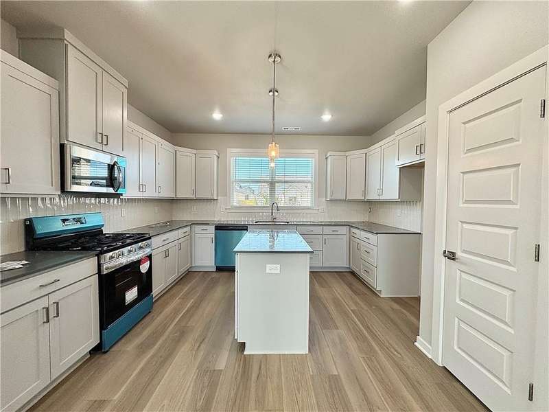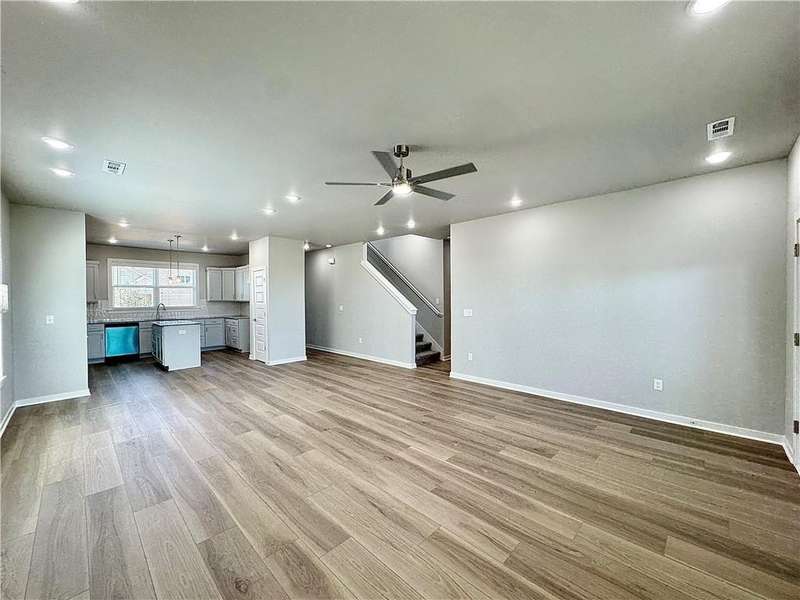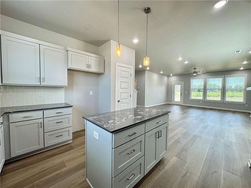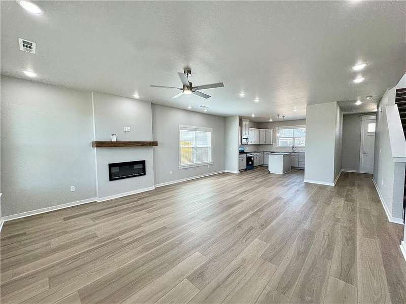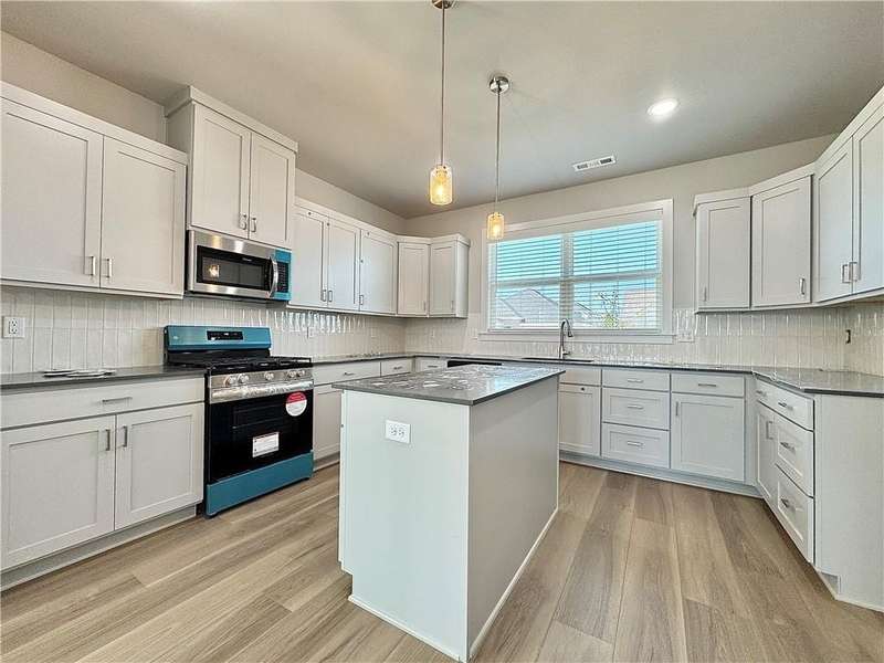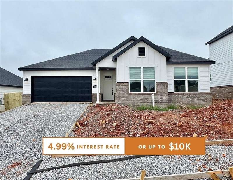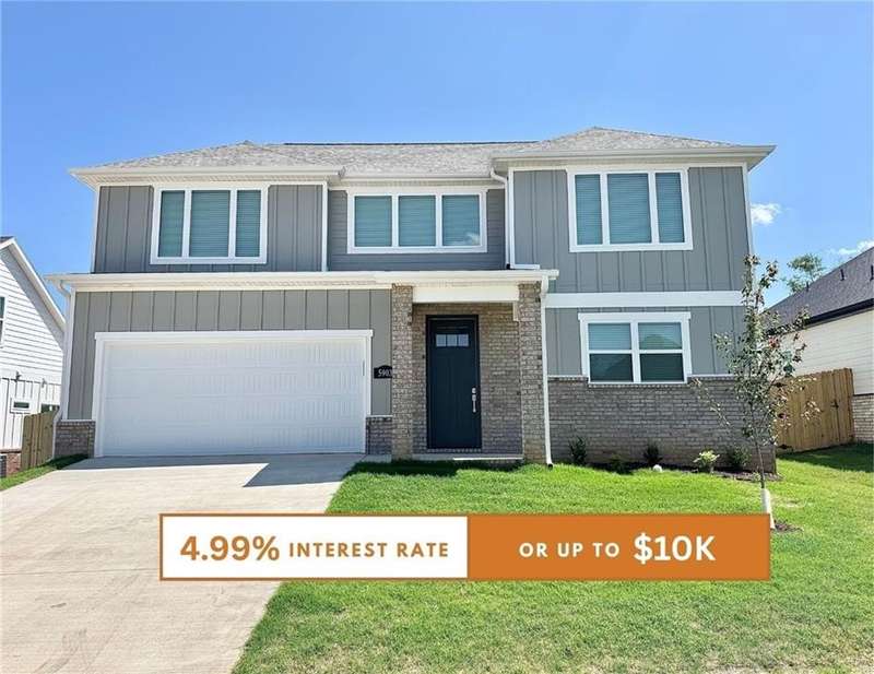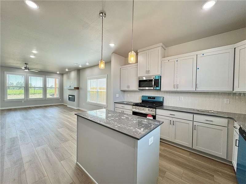 Fence, blinds and gutters included! Discover your dream home in the sought-after Osage Hills neighborhood. Frisco plan with garage on the left and North facing! 9 ft ceilings, linear electric fireplace, LVP flooring throughout the main living areas and primary bedroom, quartz countertops and more. Chef's kitchen boasting frigidaire stainless steel appliances, gas range, pantry, quartz countertops, bar pull handles, large island and gorgeous backsplash. Luxurious primary bedroom features abundant natural light, while the spa-like primary bathroom offers a walk-in shower, tub, double sinks, and spacious walk-in closets. Additional features include three large secondary bedrooms upstairs and a separate laundry room. Nestled on a generous lot with covered patio that overlooks the serene sodded, fully fenced backyard. Sturdy concrete siding & brick! Model home located at 6008 SW Coywolf St- Lot 122.