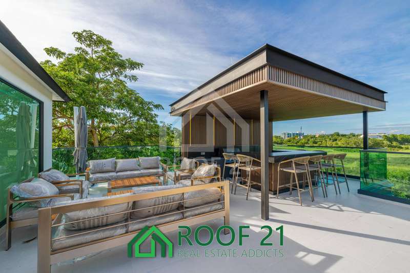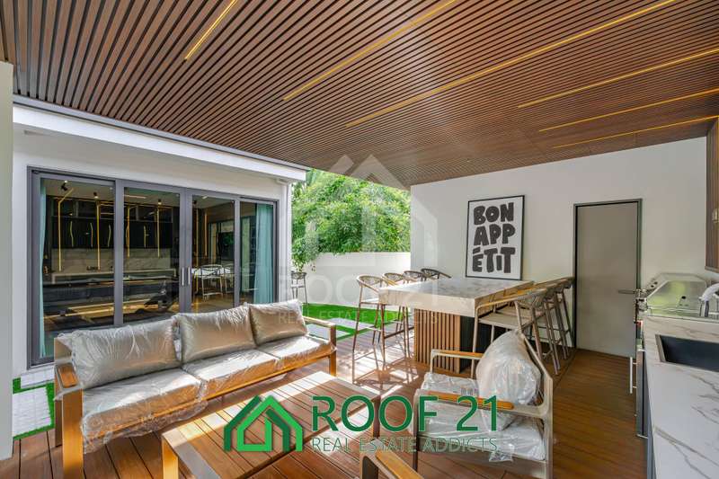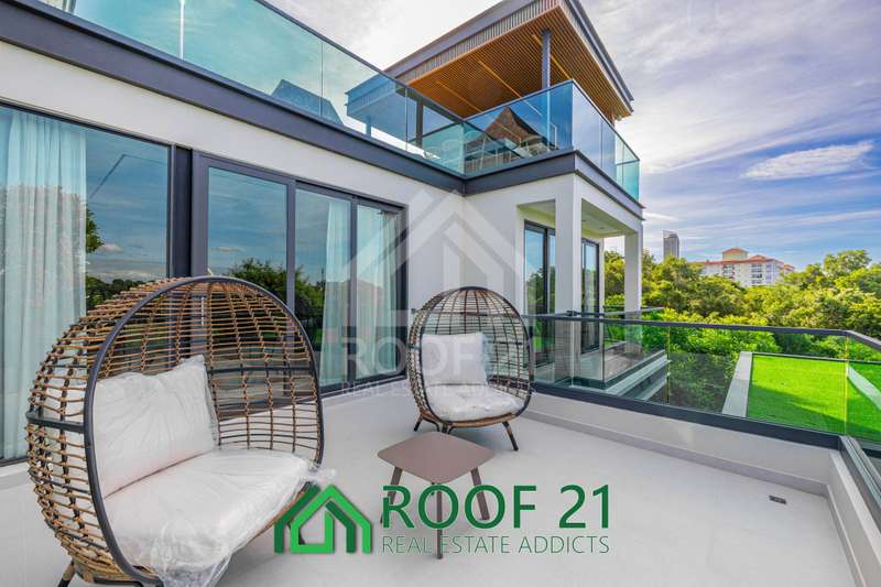 Discover true elegance and space in one of Jomtien's most prestigious gated communities - Nagawari Village. This newly listed 6+1 bedroom, 9-bathroom private pool villa redefines luxury living, offering a rare blend of comfort, convenience, and architectural sophistication.